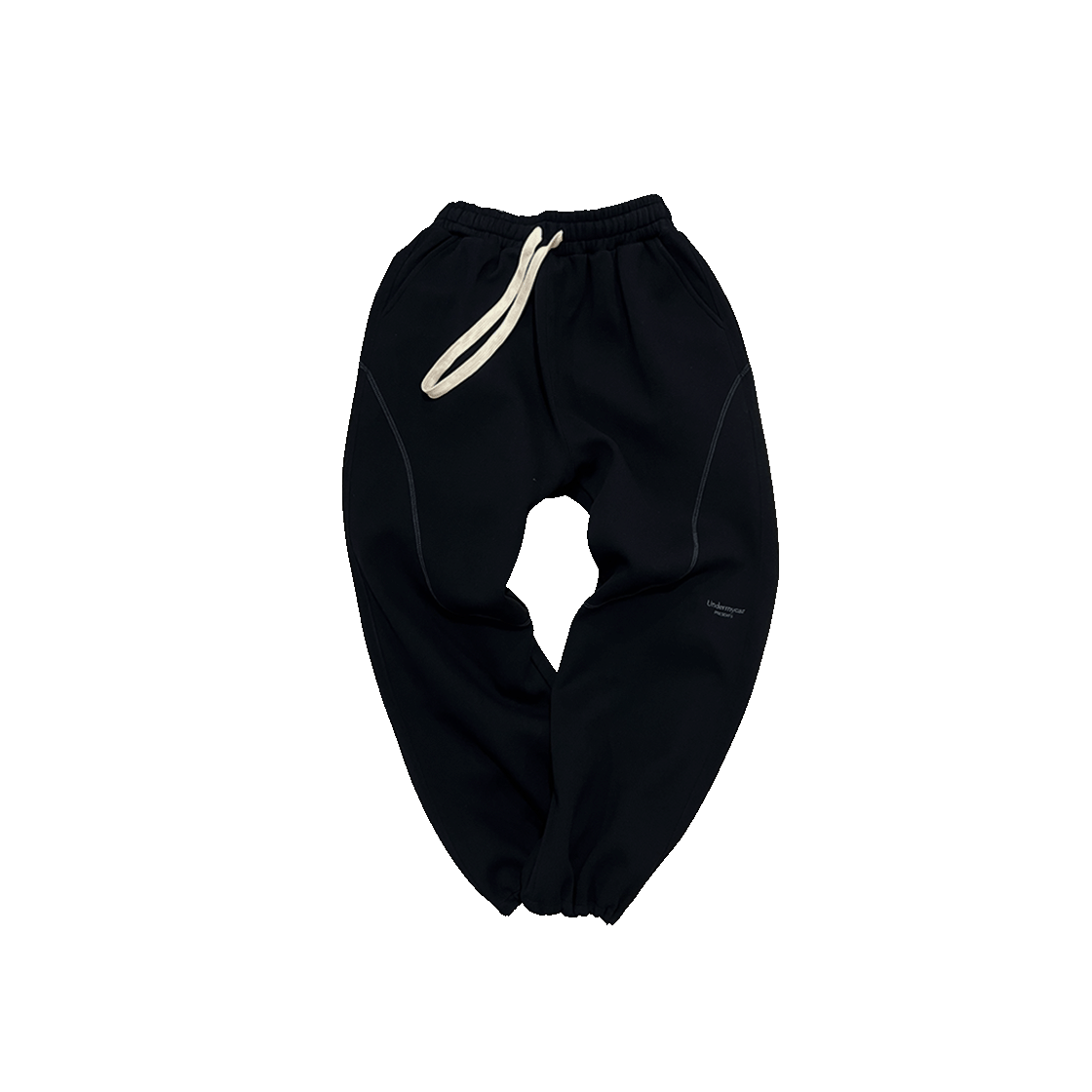 Undermycar Mu.112 Original Logo Curve Line Stitch Bonded Sweat Pants Black