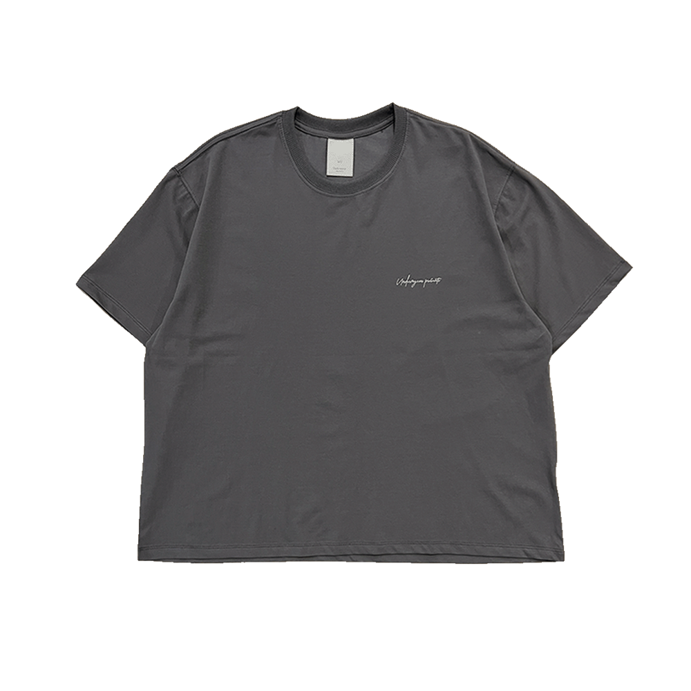 언더마이카 무.103 안티 Fxxking 로고 플레이 와이드 크롭 티셔츠 다크 그레이