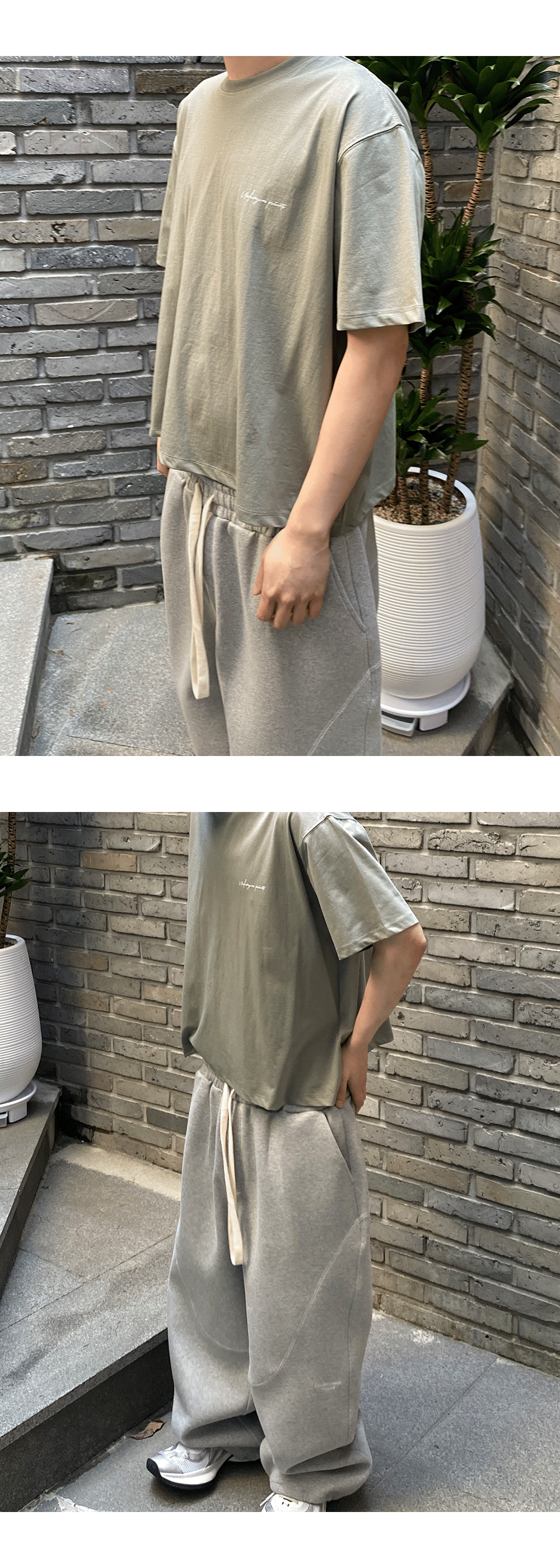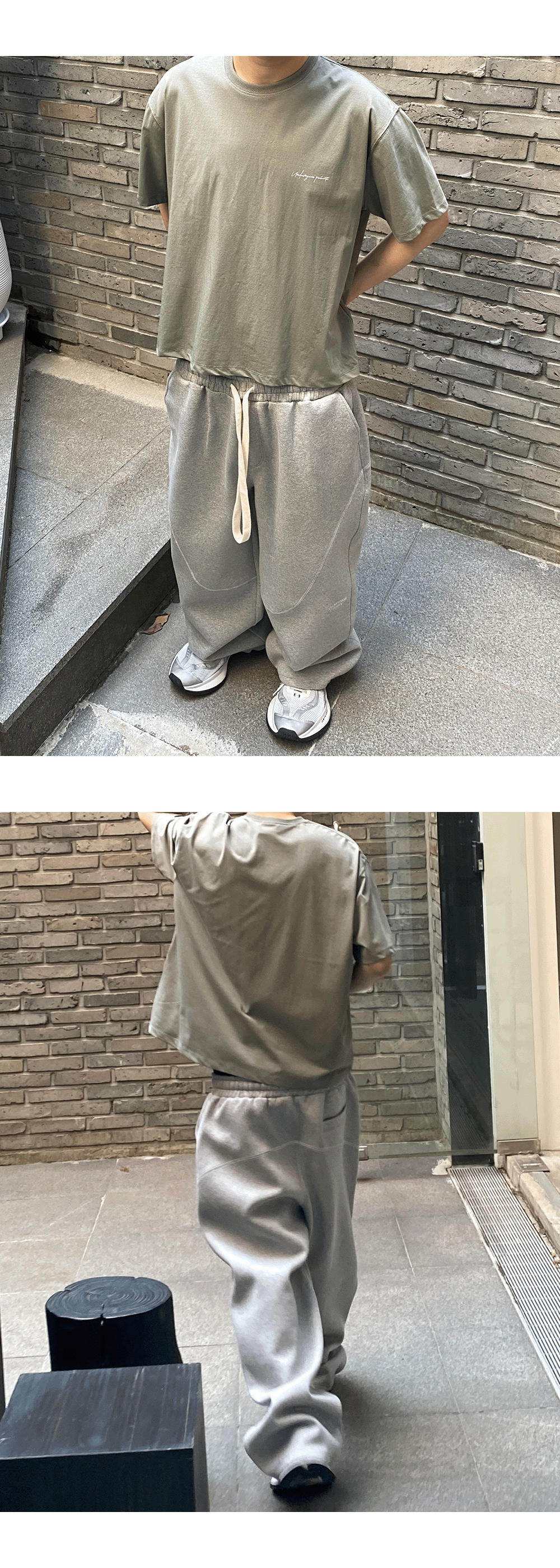 언더마이카 무.103 안티 Fxxking 로고 플레이 와이드 크롭 티셔츠 세이지 그린