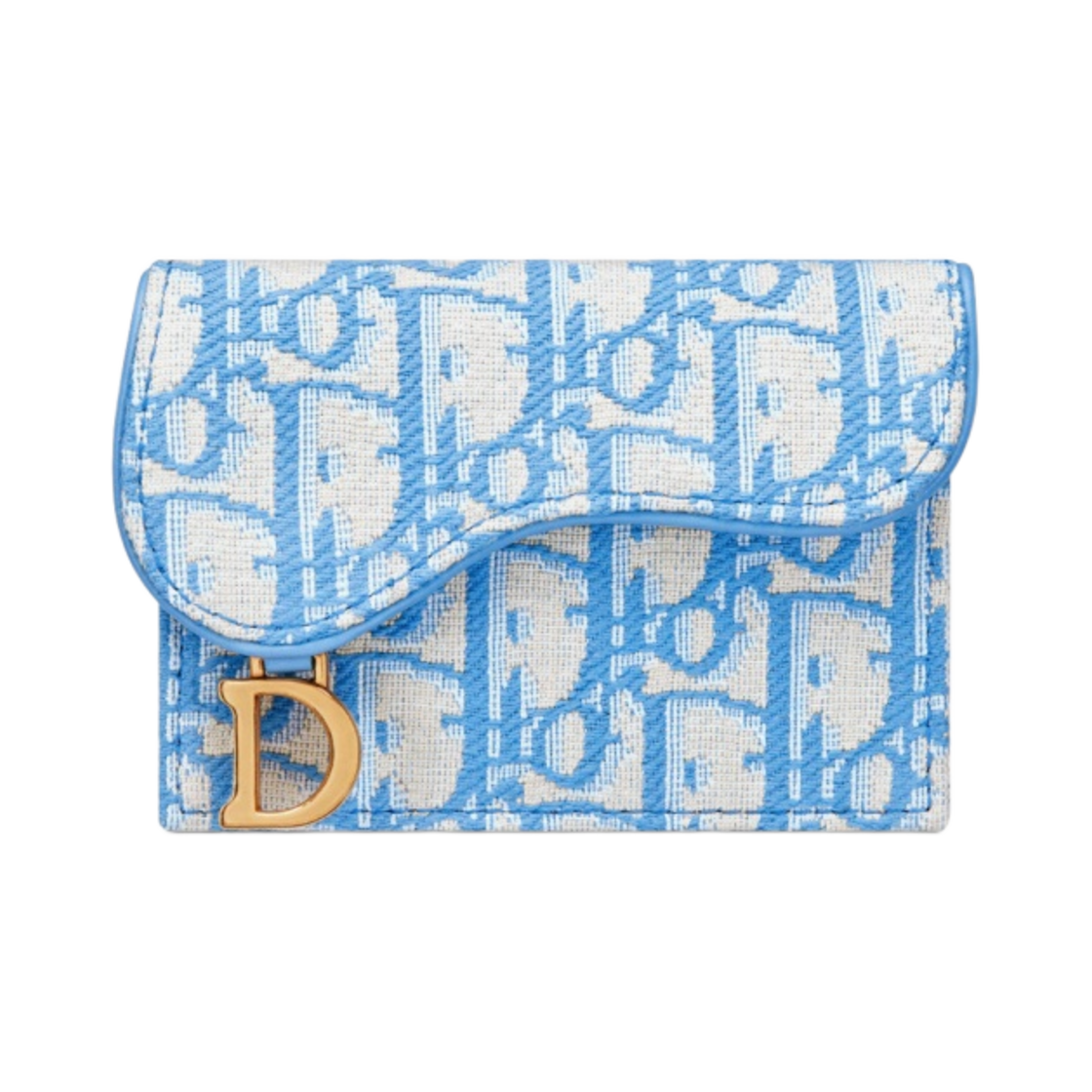 Dior Saddle Flap Card Holder Cornflower Blue Dior Oblique Jacquard