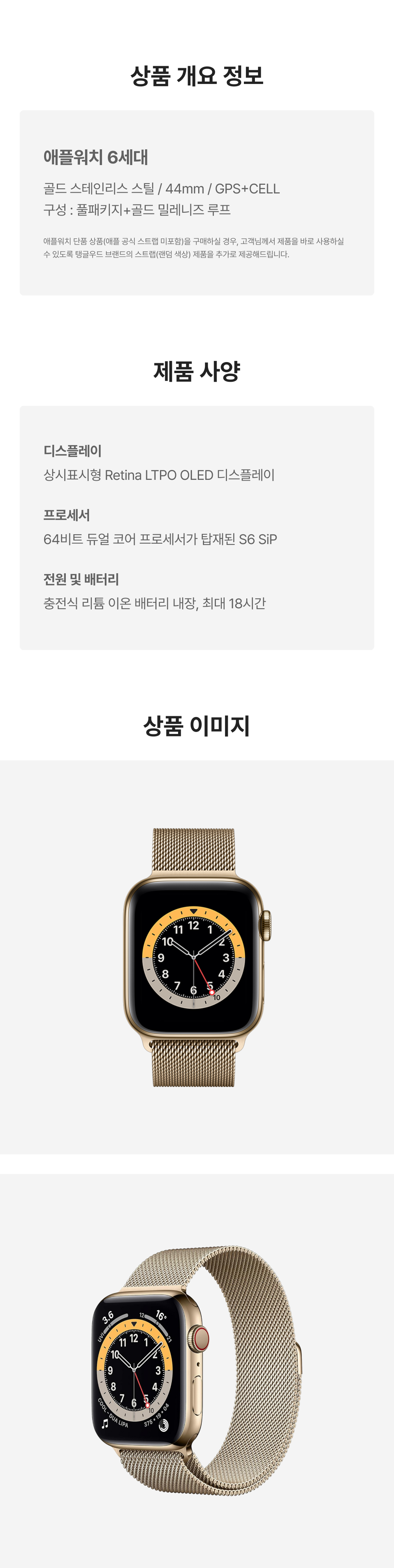 [B등급] 리퍼비시 애플워치 6 44mm 셀룰러 골드 스테인리스 스틸 케이스 밀레니즈 루프 골드