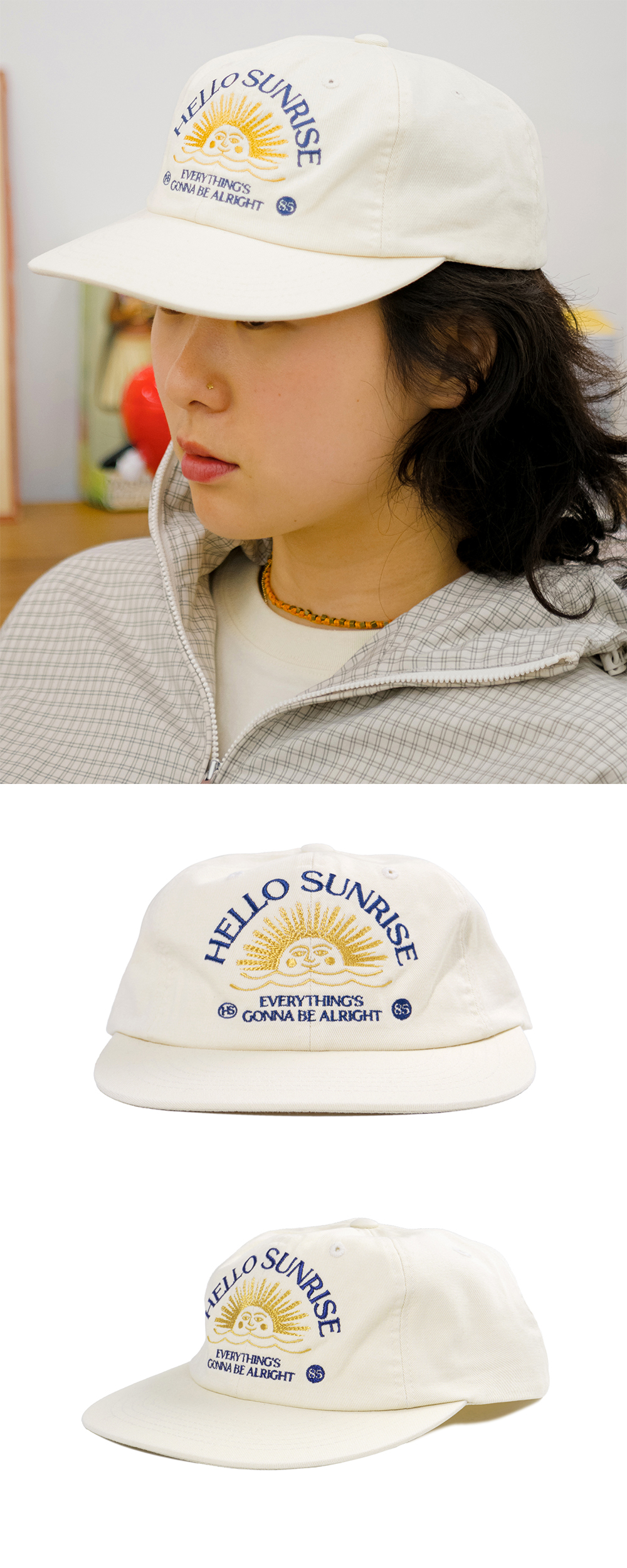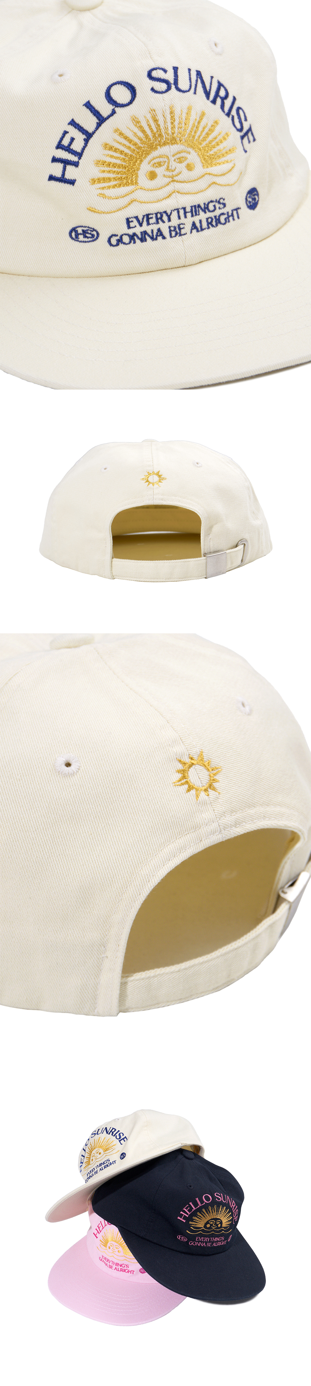 헬로선라이즈 아치 로고 그래픽이 투톤 자수로 들어간 6패널 캡입니다. - 워싱 가공으로 빈티지한 무드 - 뒷판 Hello Sunrise 심볼 자수 처리 *모자의 챙을 개인적인 취향에 따라 원하시는 각도로 구부려 착용하시길 권장 드립니다. *모자의 챙이 워싱과정으로 살짝 삐뚤어져보이는 현상은 제품의 불량이 아니므로 반품사유가 되지 않습니다. * Cotton 100% Made in Korea