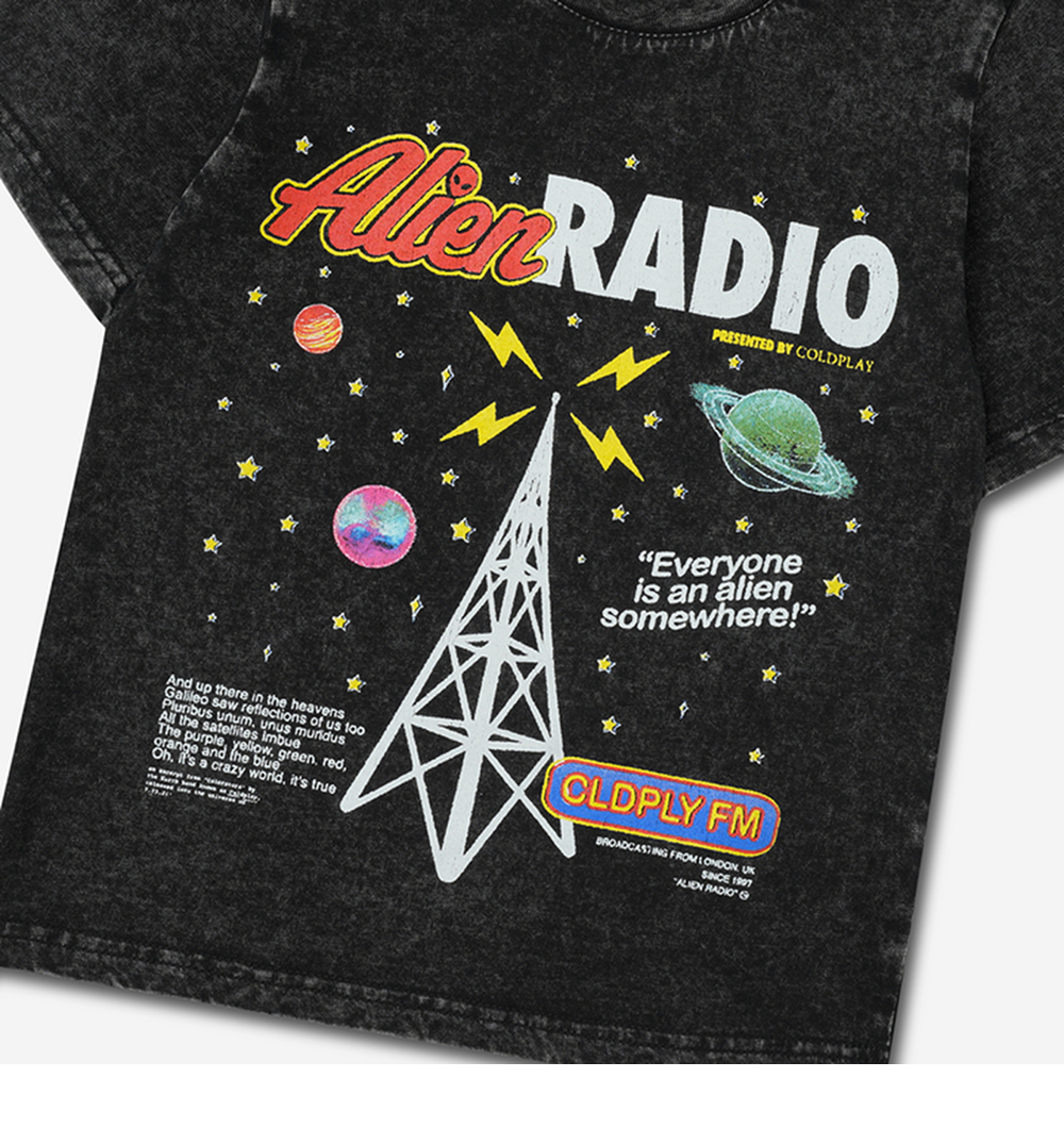 콜드플레이 뮤직 오브 더 스피어스 월드 투어 에일리언 라디오 유스 티셔츠 차콜