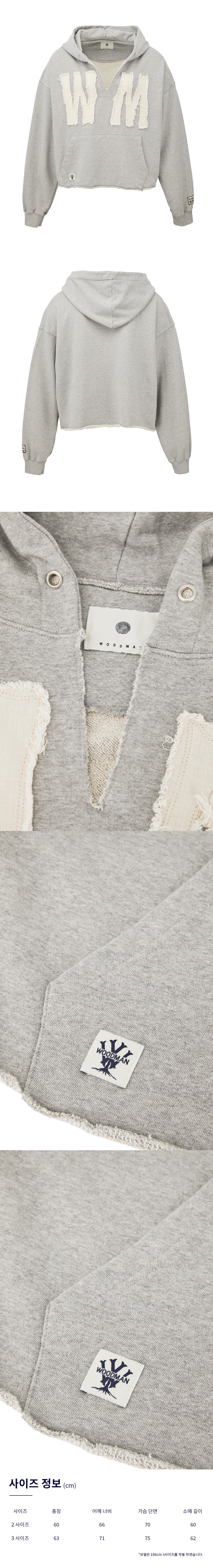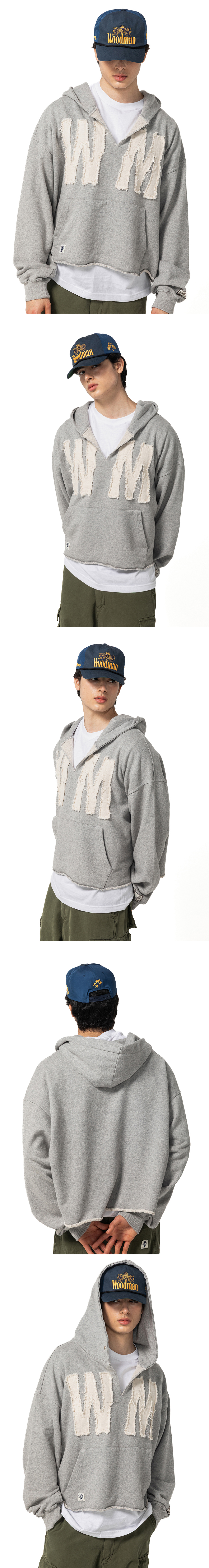 초 여름까지 착용 할 수 있는 간절기용 후드 입니다. 우드먼의 이니셜 ‘W’와 ‘M’이 아플리케 형식으로 자수 부착 되어 있습니다. 이니셜 아플리케는 데님 마 원단을 사용하여 더욱 멋진 빈티지함을 완성 하였습니다. 목 부분을 빈티지한 감성으로 절개하였으며 소매와 주머니에 포인트 라벨이 있습니다. - 그런지 감성의 빈티지 후드 - 데님 마 아플리케 이니셜 디자인 - 텐타 덤블 워싱