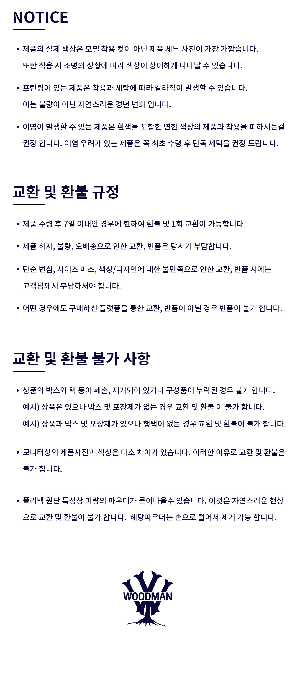 교환 및 반품 안내