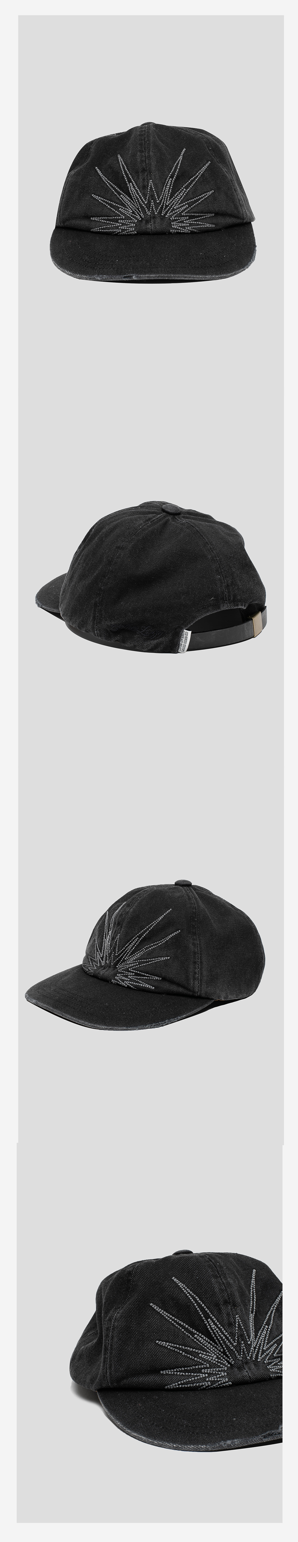 Fabric Cotton 100% Made In Korea Model Spec. 178cm / 64kg OS size 웨스턴 무드의 그래픽 자수 후면에 있는 필기체 디테일 빈티지 오일 가죽끈 처리 포인트라벨 및 황동 사각버클 빈티지 가공이 들어간 모자 * 이염이 발생할 수 있으니 구분해서 세탁부탁드립니다.