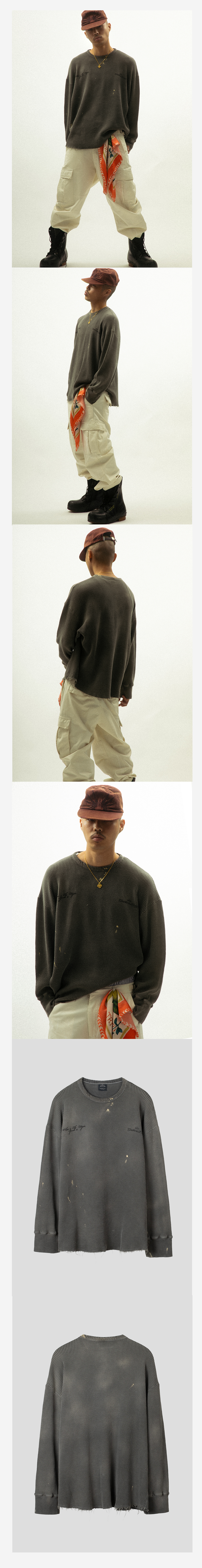 게더레이지 와이드 컷 와플 슬리브 워시드 카키