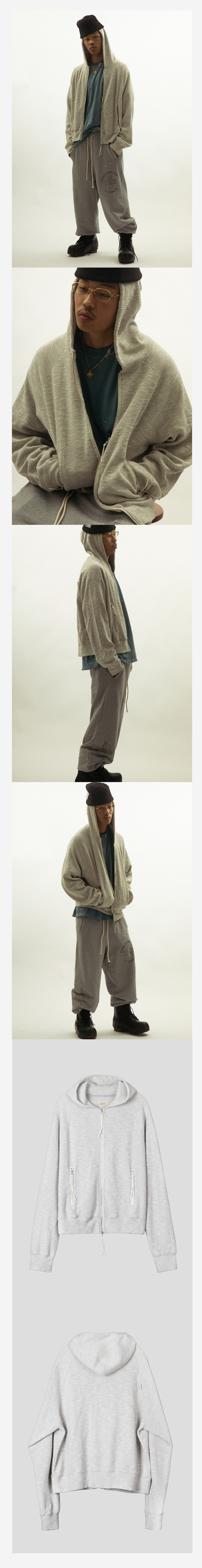 게더레이지 나그랑 크롭 와플 후드 집업 멜란지
