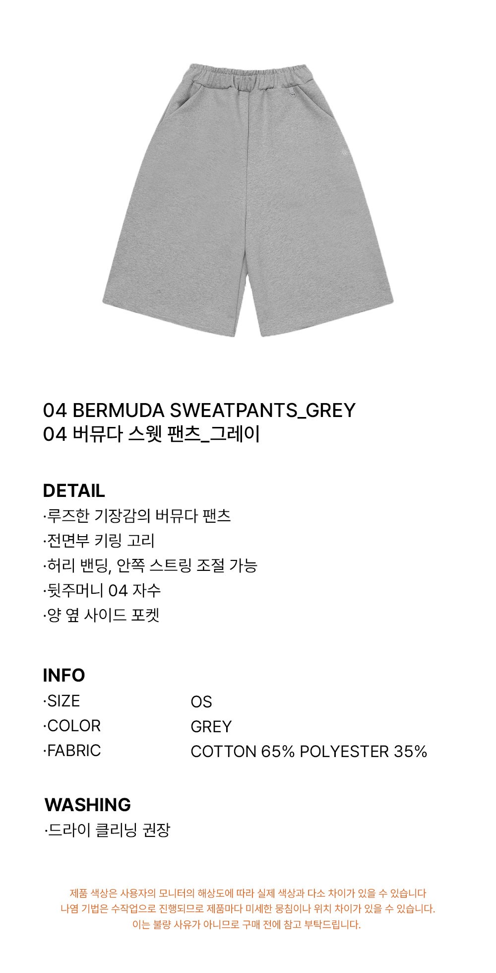 슬로우 레코드 하우스 04 버뮤다 스웻 팬츠 그레이