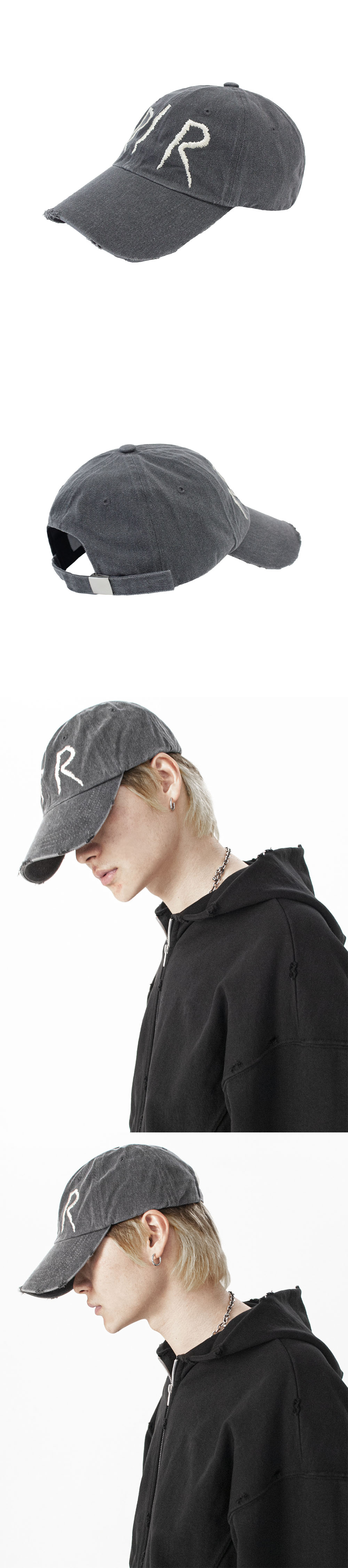 깊은 모자 폭과 긴 챙으로 안정적인 착용감. 챙 끝부분 디스트로이드 디테일. 2번의 워싱 처리.