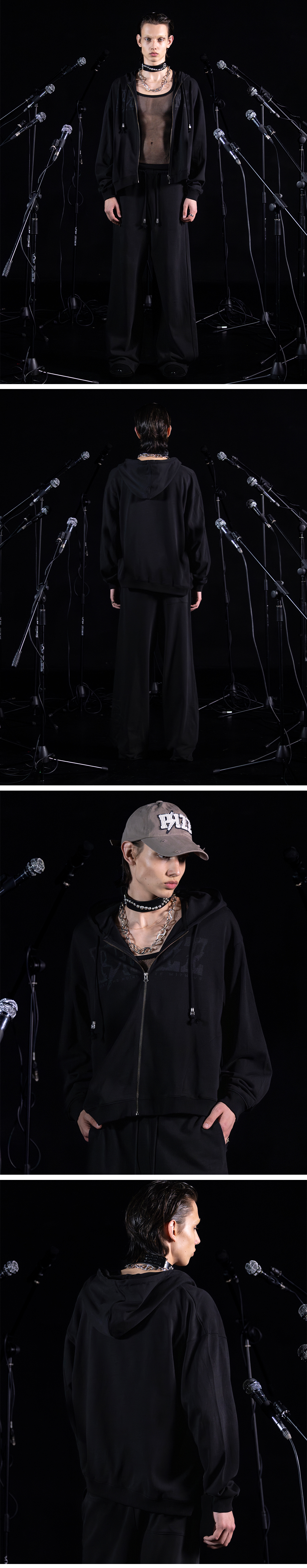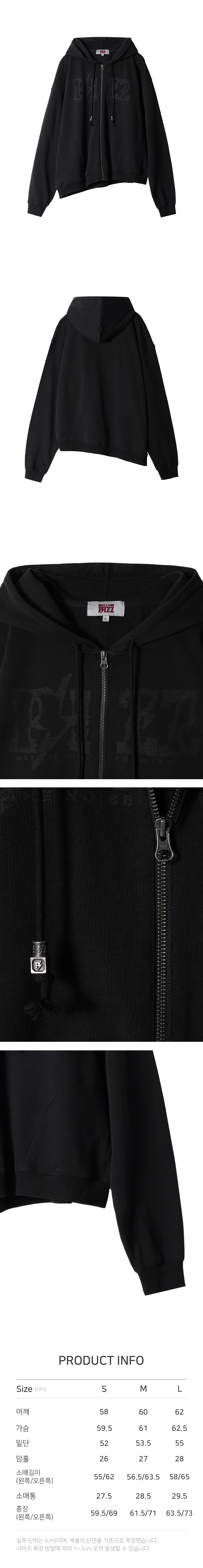 비대칭 실루엣의 오버핏 후드 집업 포켓 스티치와 커스텀 참, 정교한 디지털 프린팅으로 완성한 시그니처 그래픽이 멜로우만의 무드를 완성합니다. FEATURE - 오버핏 비대칭 후드 집업 - 좌/우 어깨, 소매, 밑단 언발란스 디테일 - 커스텀 후드 스트링 참 디테일 - 포켓 스티치 디테일 - 그래픽 디지털 프린팅 포인트