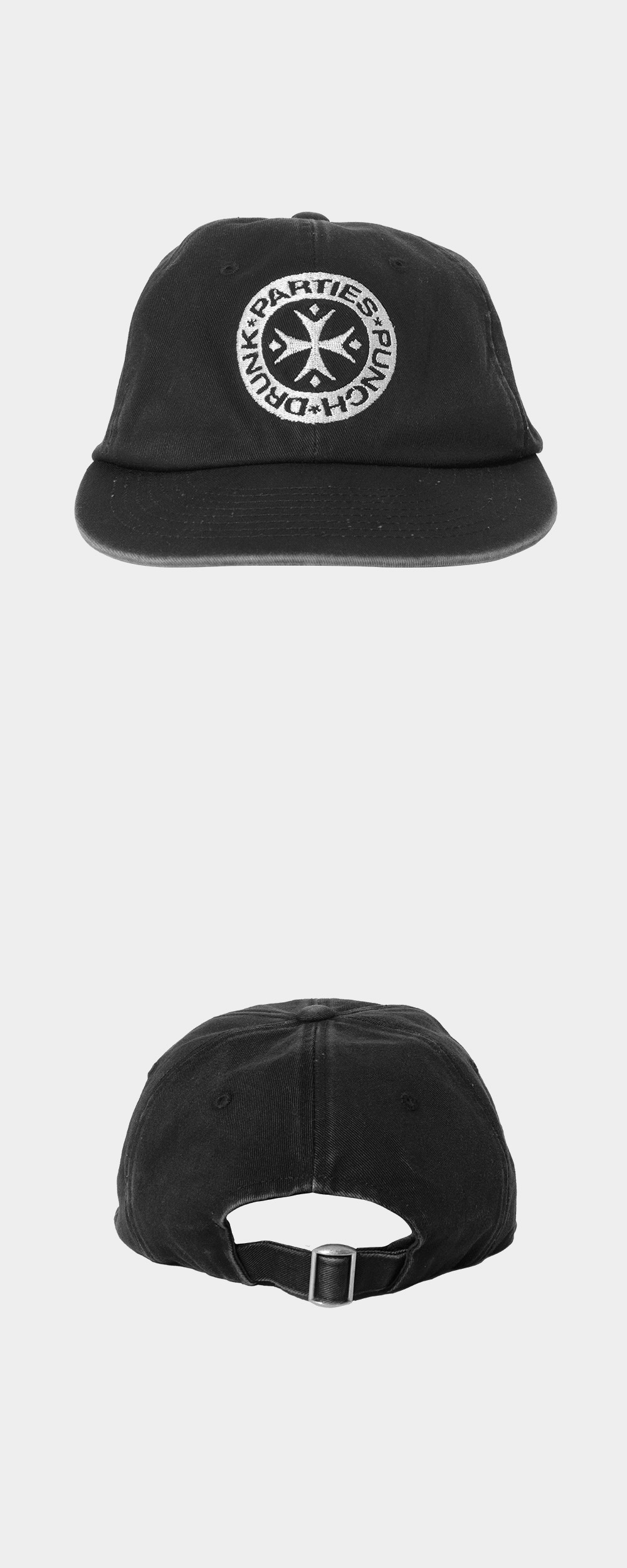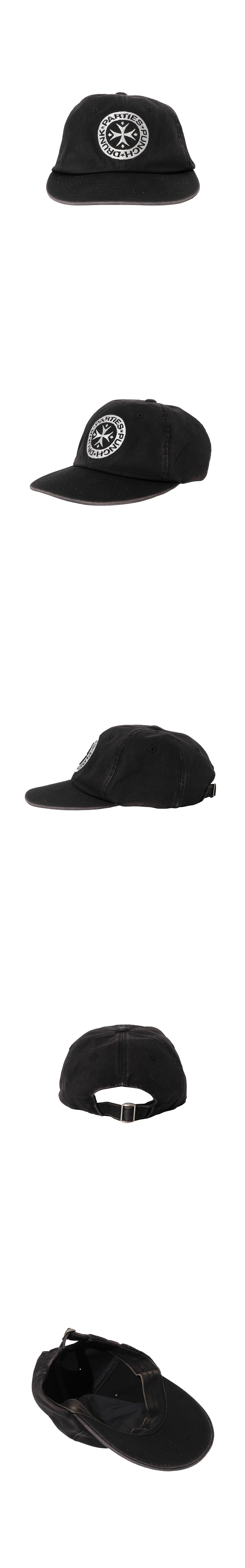 펀치 드렁크 파티즈 서클 로고 6패널 캡 워시드 블랙