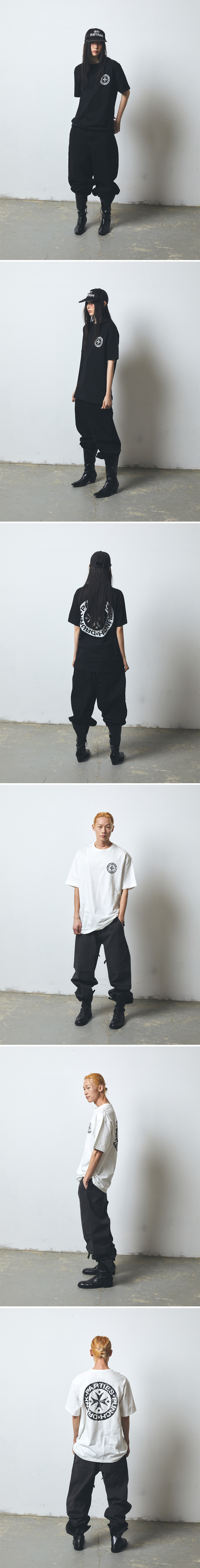 16수 싱글 면 100%의 원단으로 오버사이징 된 넓은 너비에, 짧은소매로 락시크한 무드와 캐쥬얼한 연출이 모두 가능합니다. 70년대 수소봉제 기법으로 소매와 밑단을 마감, 오랜 시간 변형 및 손상을 최소화 하여 활용 가능합니다. Size Guide Male / 183cm, 61kg, Size 3 Female / 174cm, 54kg, Size 1