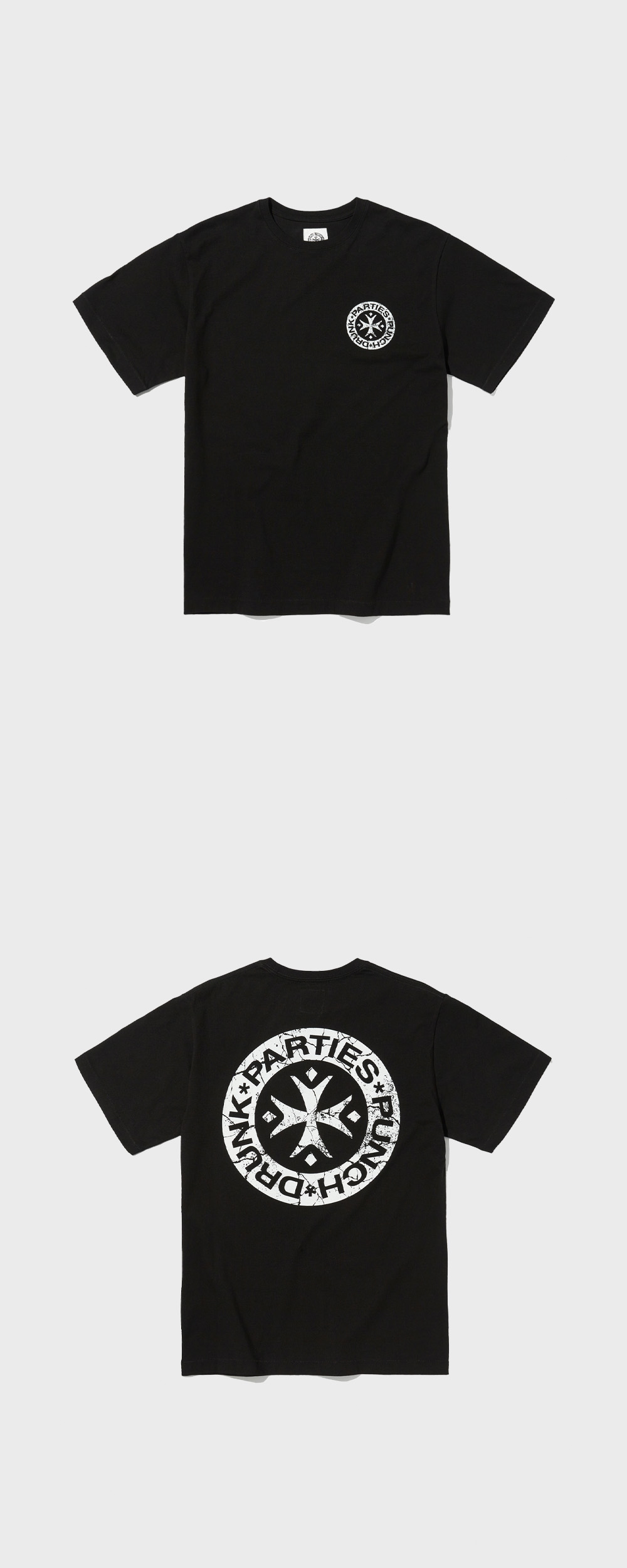 펀치 드렁크 파티즈 허트 로고 네로우 티 블랙