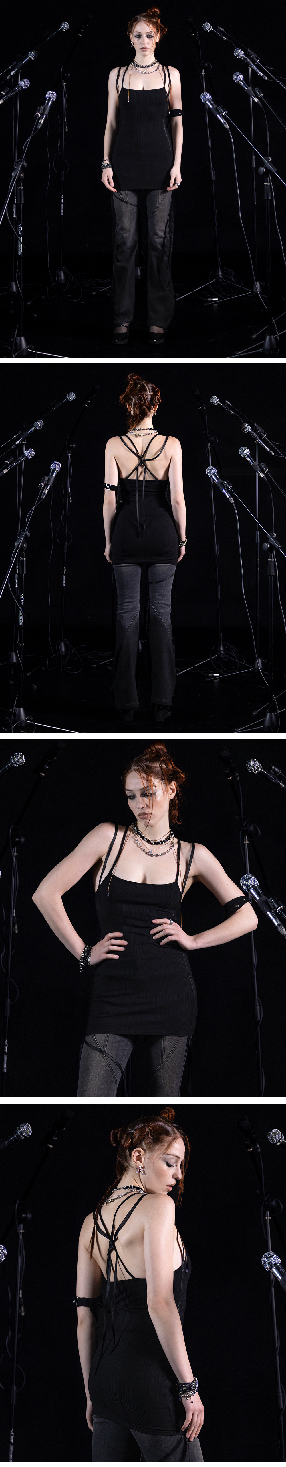슬림하게 떨어지는 골지 텍스처와 독특한 실루엣을 강조하는 스트링 디테일로, 개성과 연출력을 동시에 갖춘 아이템입니다. 넥라인과 밑단에 배색 스트링이 더해져 다양한 스타일링이 가능하며, 단독으로도 강한 인상을 남깁니다. FEATURE - 슬림 핏 미니드레스 - 골지 소재 사용 - 배색 라인 디테일 - 넥라인 스트링으로 다양한 연출 가능 - 나일론 배색 스트링 사용 - 밑단 드롭 스트링 디테일
