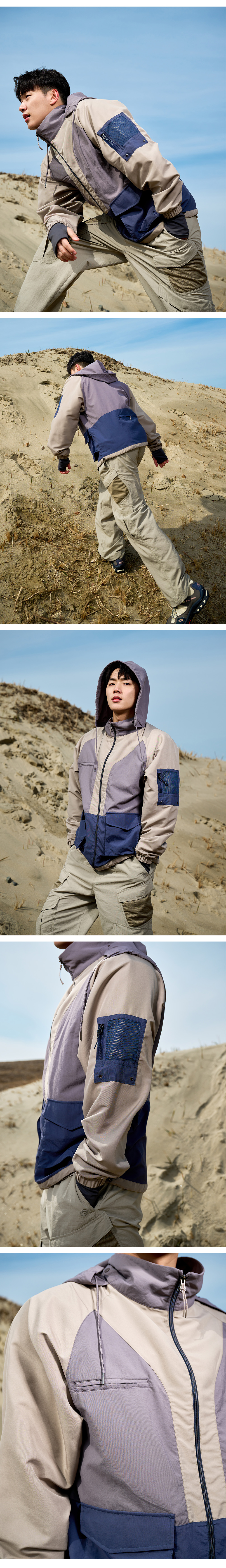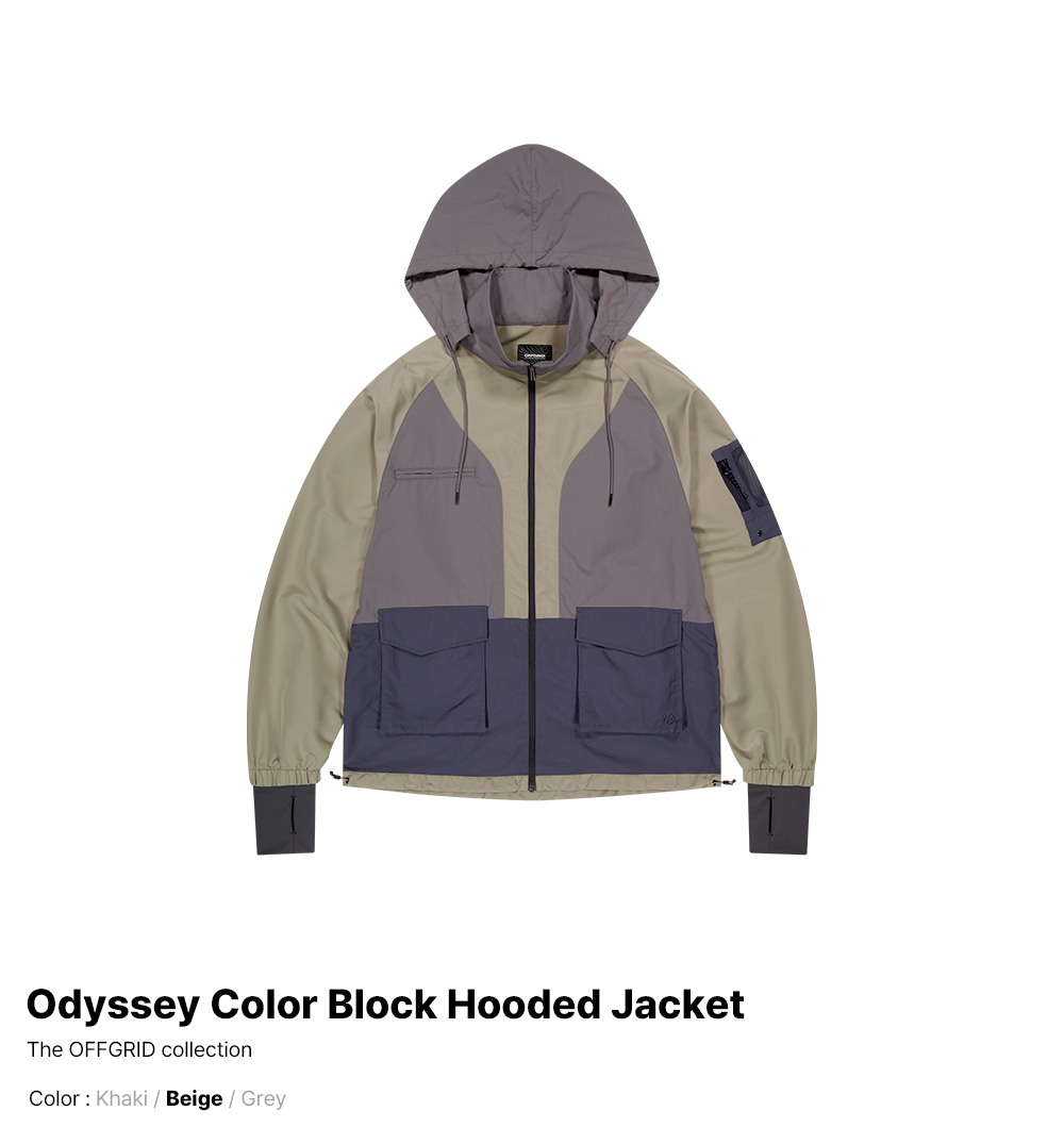 오프그리드 오디세이 컬러블럭 후드 자켓 베이지