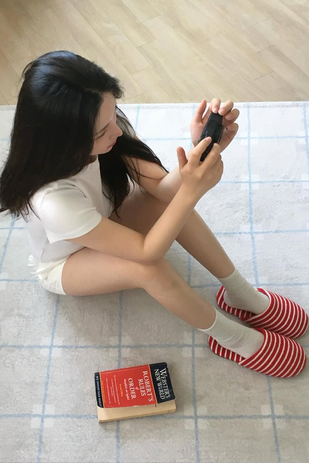 폴리 테리 스트라이프 룸슈즈 레드