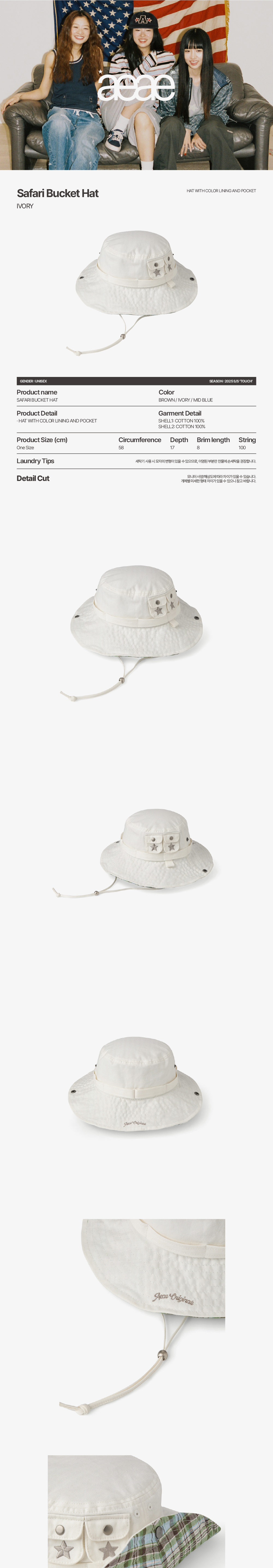 에이이에이이 사파리 버킷 햇 아이보리