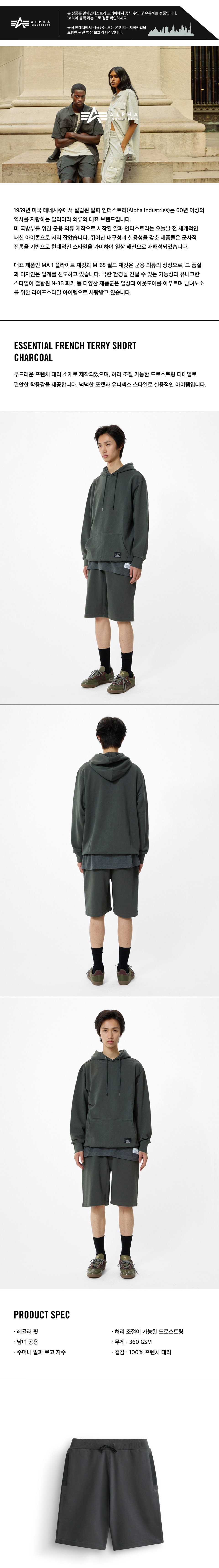 알파 인더스트리 에센셜 프렌치 테리 쇼츠 차콜
