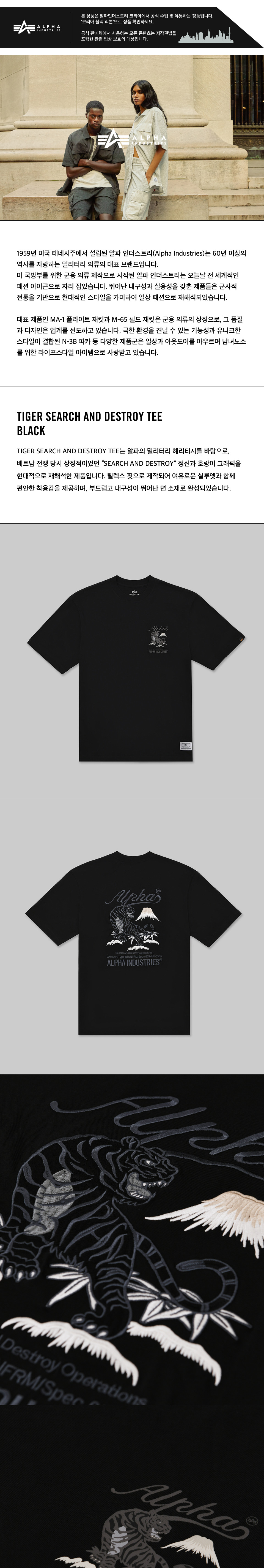 알파 인더스트리 타이거 서치 앤 디스트로이 티셔츠 블랙