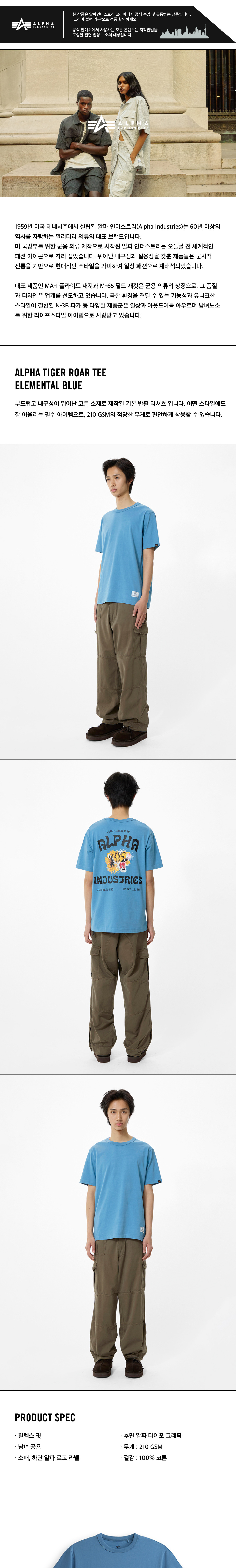알파 인더스트리 알파 타이거 로어 티셔츠 엘리멘탈 블루
