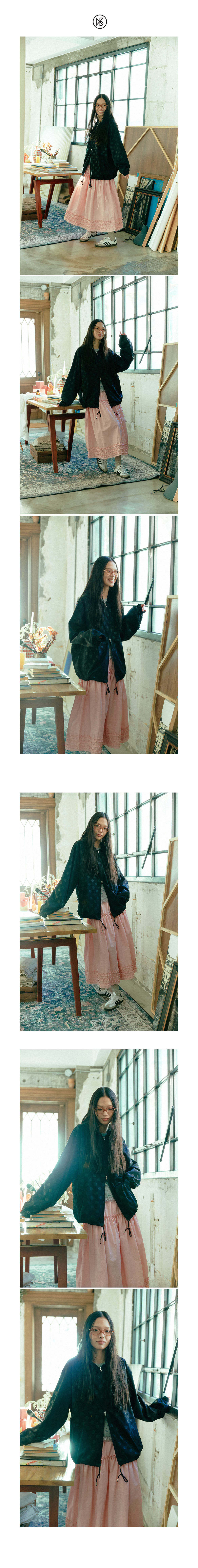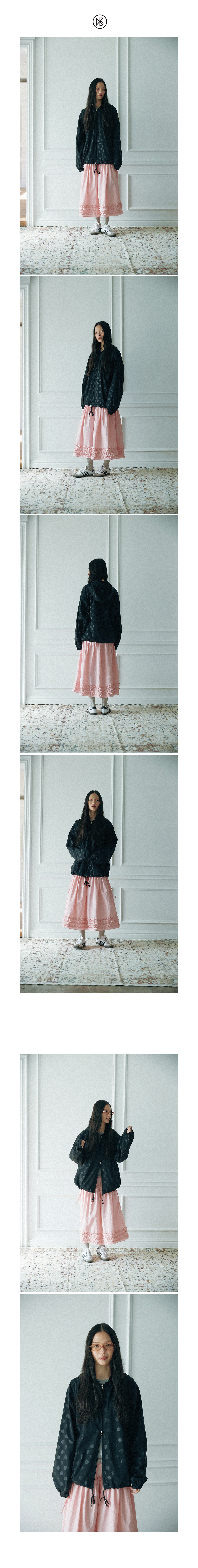 쿠키시 도트 후드 윈드브레이커 블랙