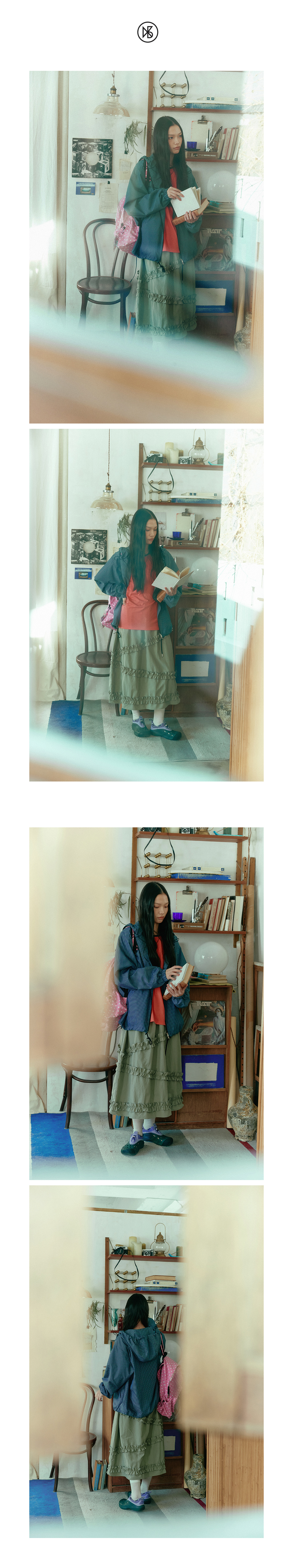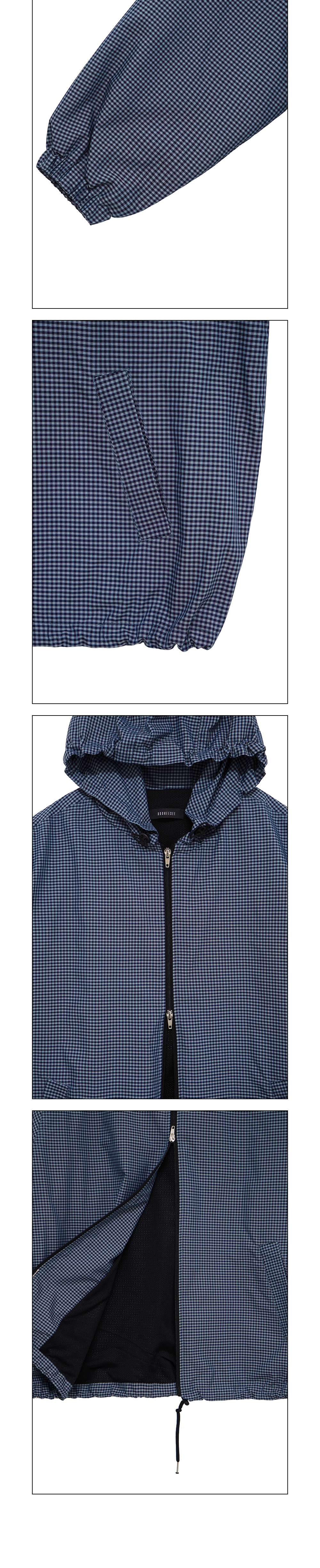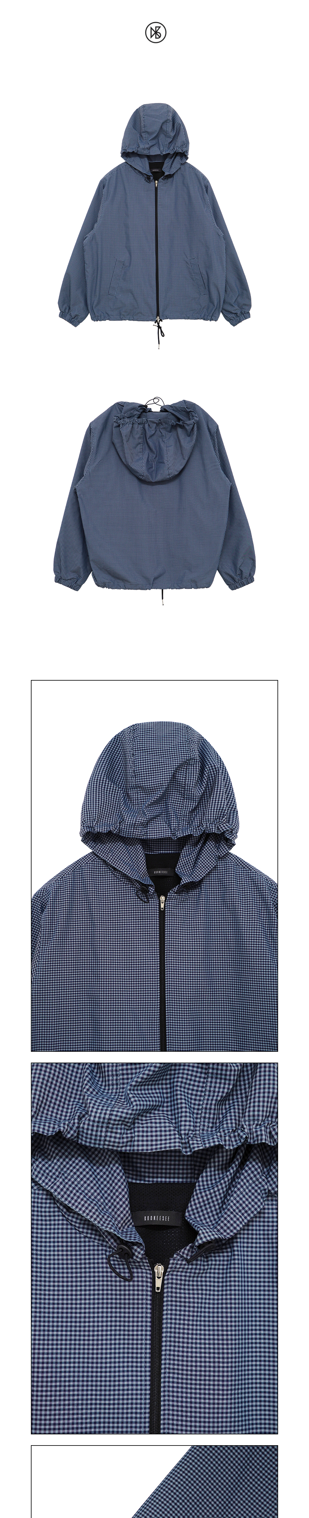 쿠키시 체크 후드 윈드브레이커 블루