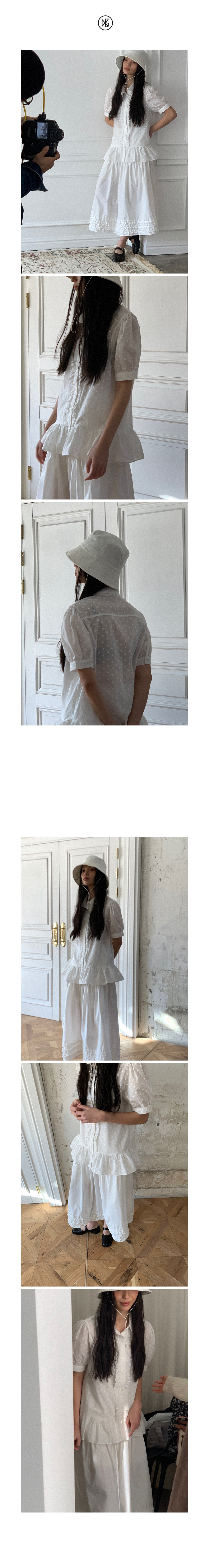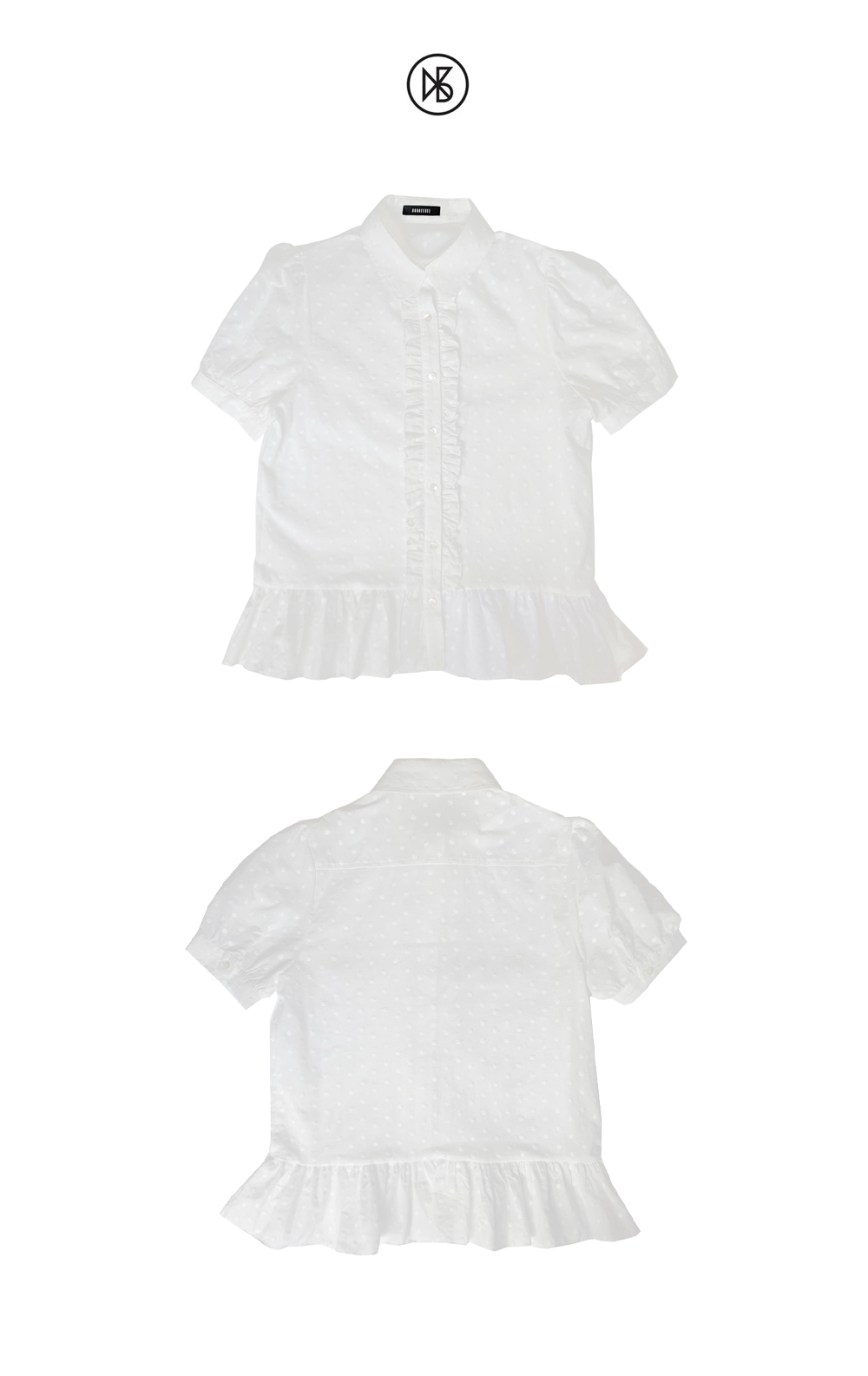쿠키시 러플 반팔 블라우스 플라워 자수