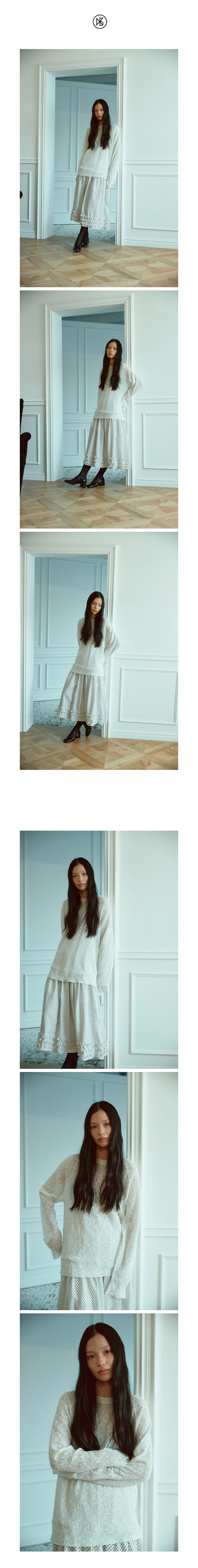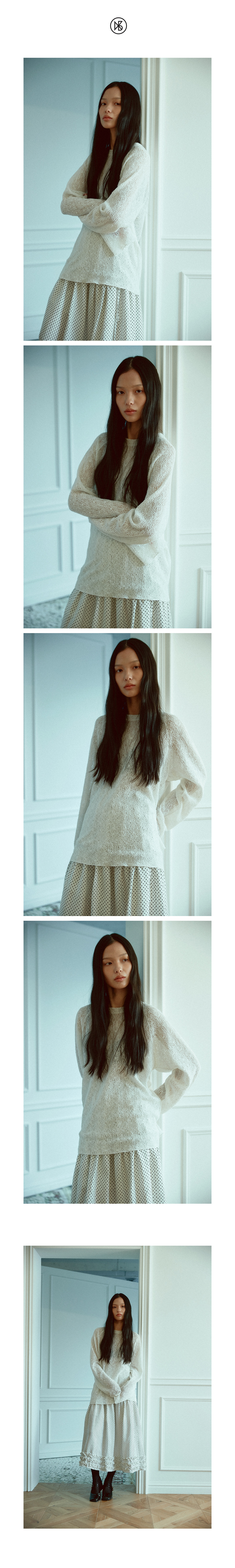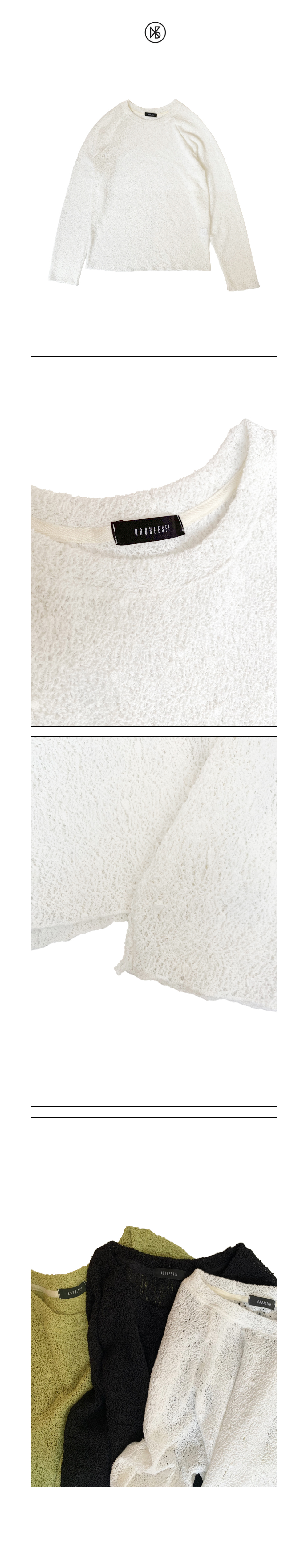 쿠키시 네트 래글런 슬리브 니트 티셔츠 화이트