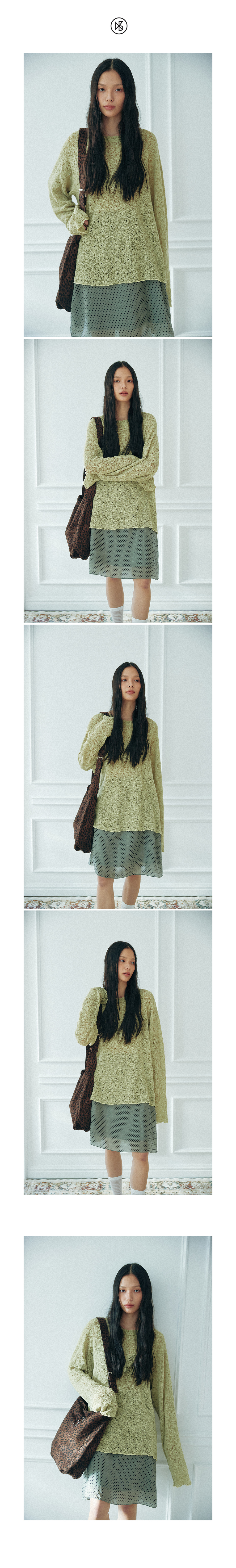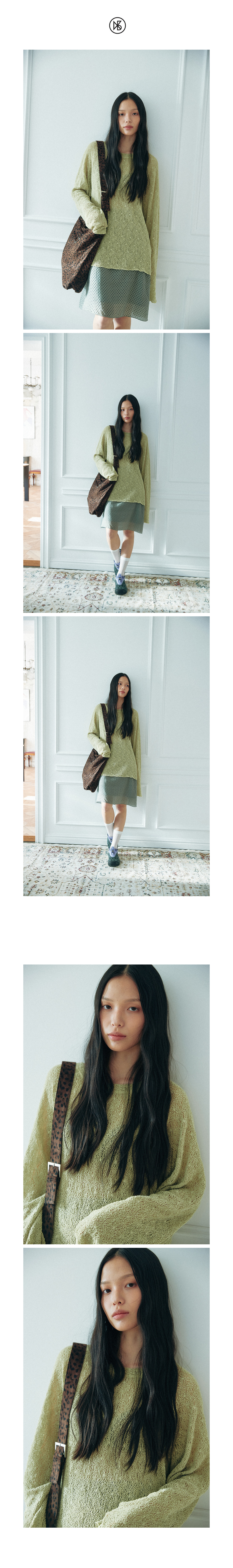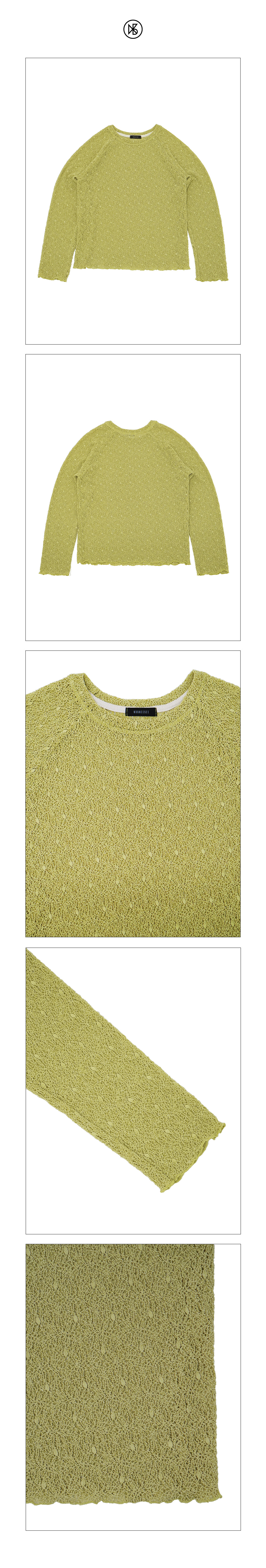 쿠키시 네트 래글런 슬리브 니트 옐로위시 그린