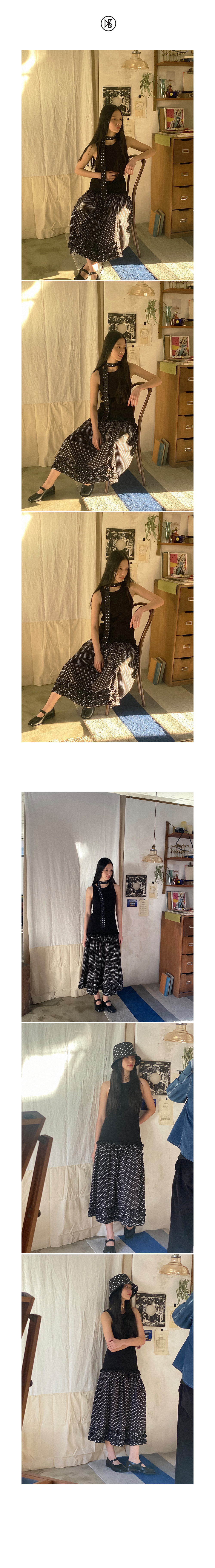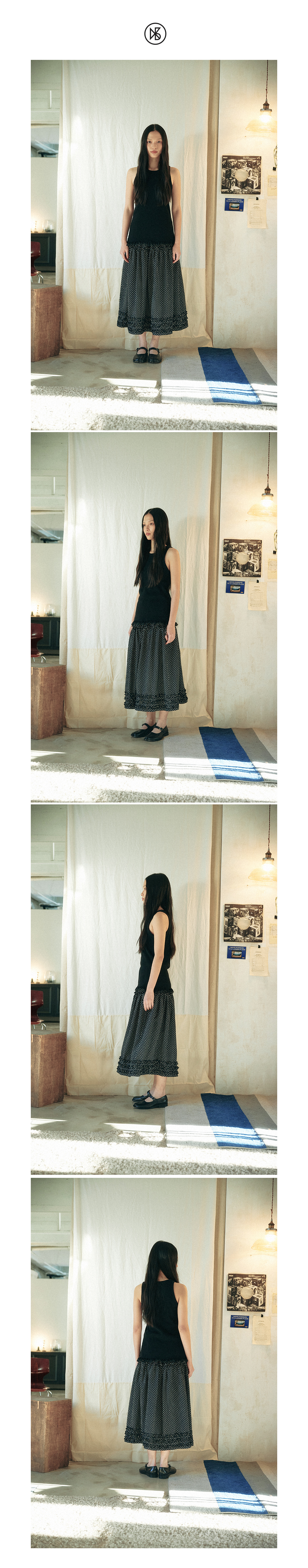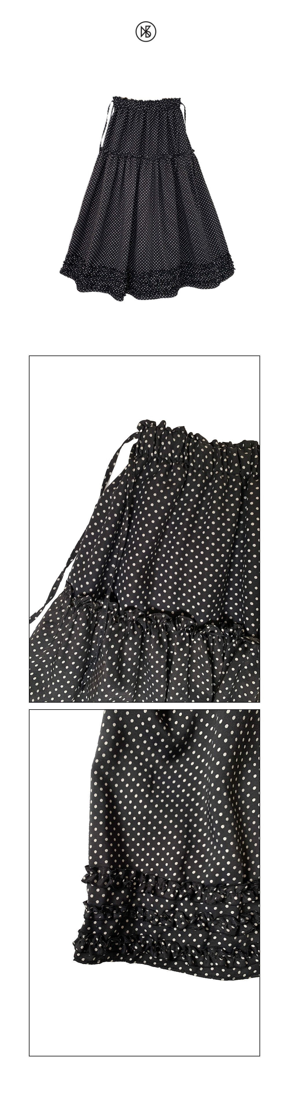 쿠키시 비키 프릴 롱 스커트 도트블랙