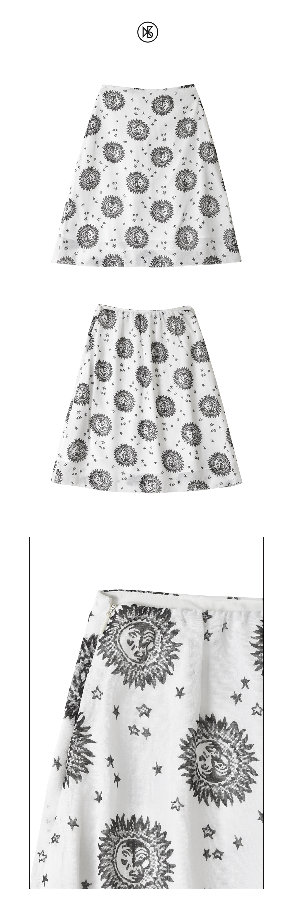 쿠키시 태양 나염의 레이온 미디 스커트 화이트