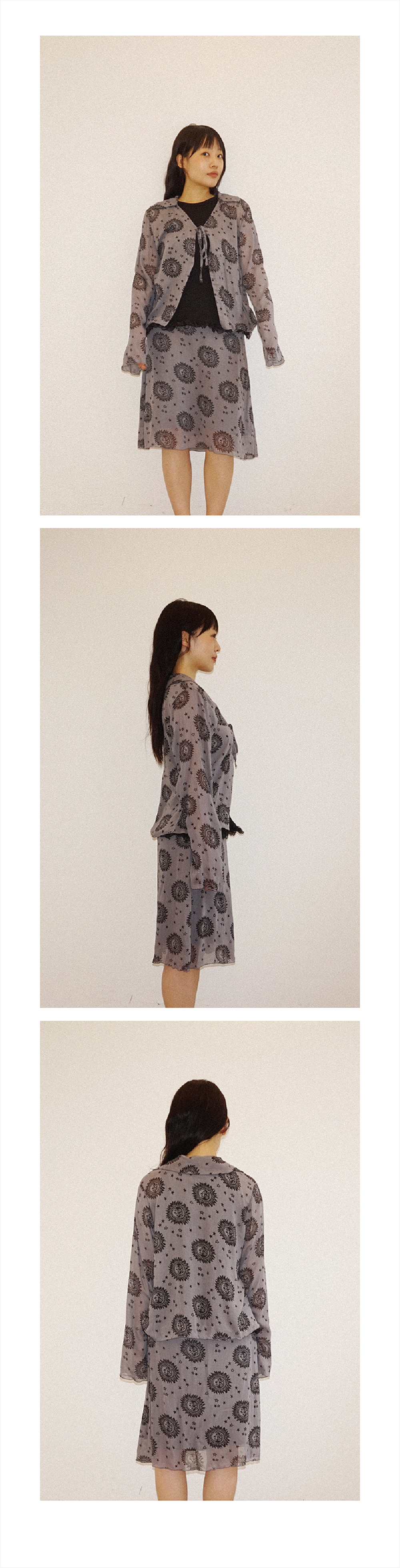 쿠키시 태양 나염의 레이온 미디 스커트 다크그레이