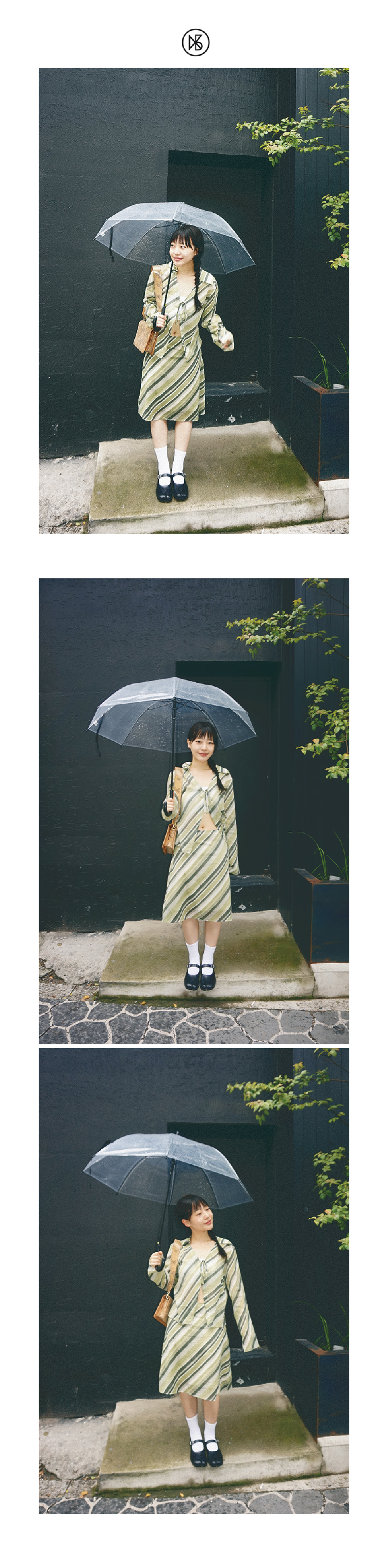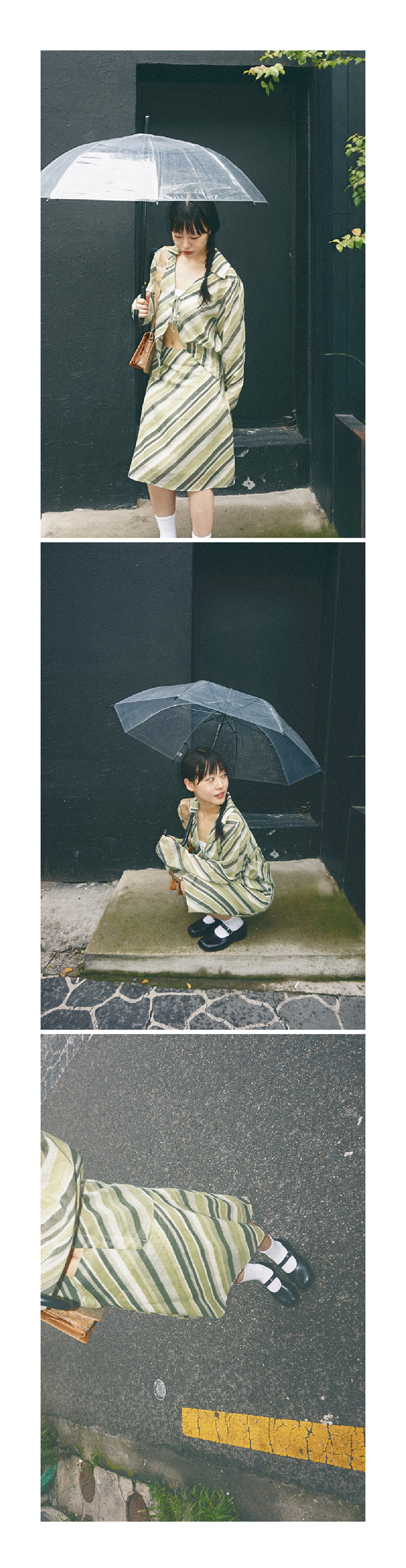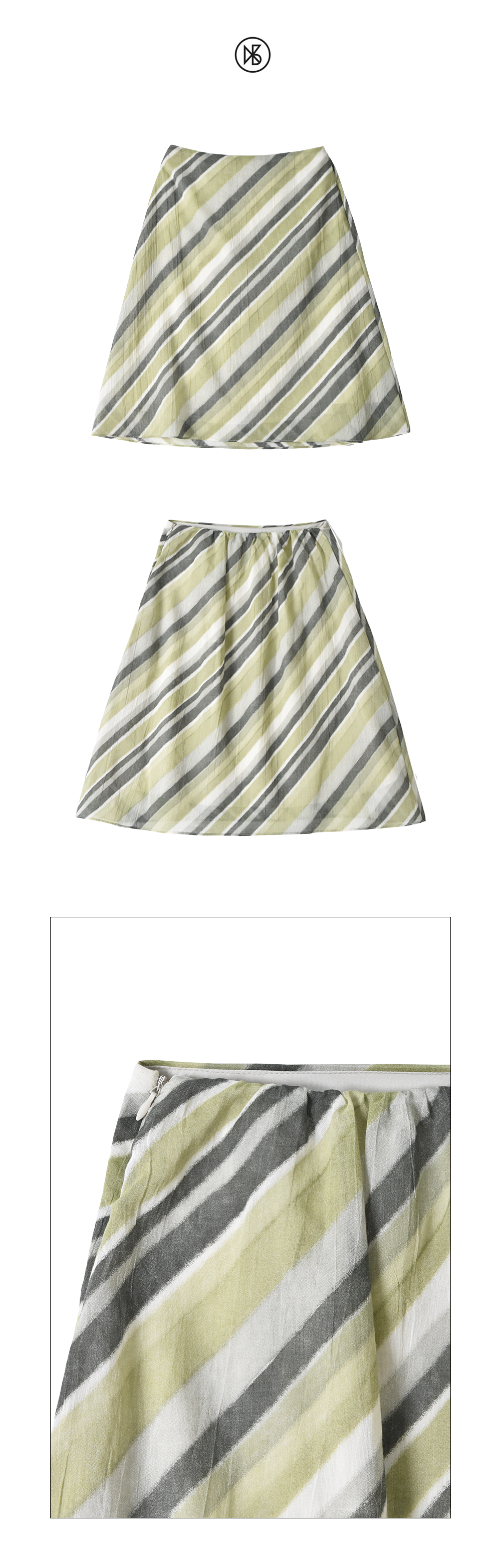 Kookeesee Diagonal Line Skirt Khaki