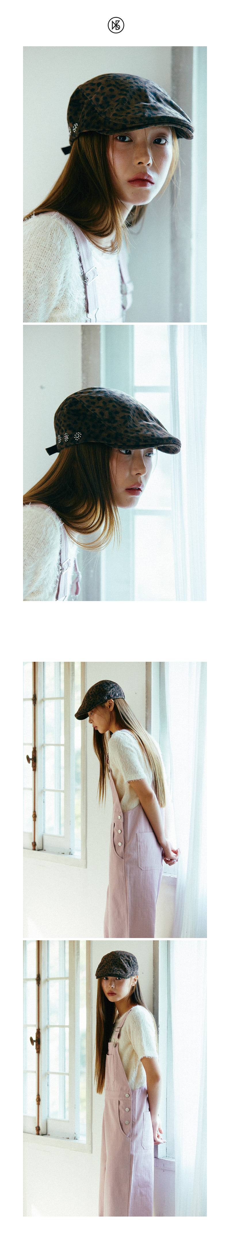 쿠키시 에코 스웨이드 스터드 헌팅캡 레오파드
