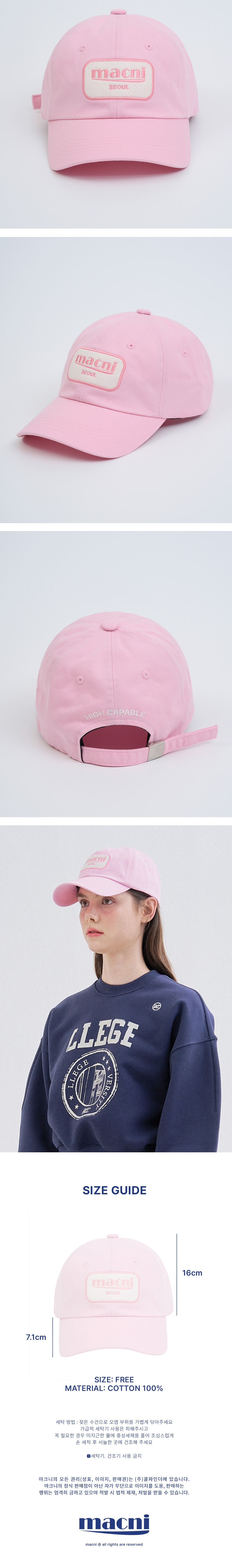 마크니 Y2K 로고 패치 볼캡 핑크