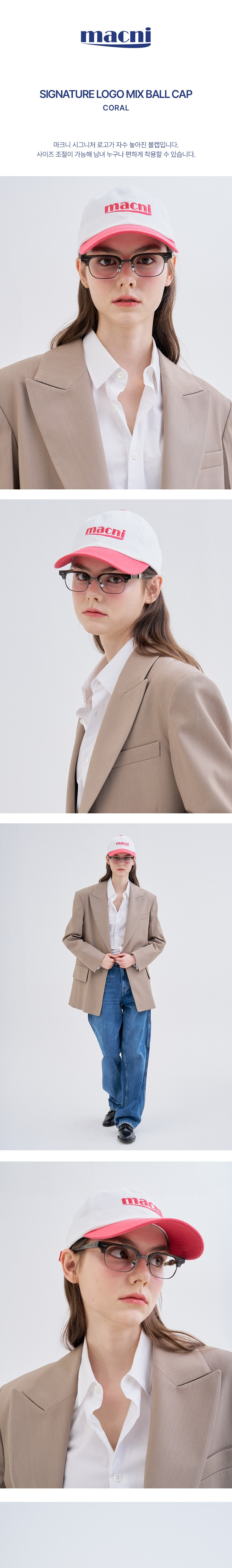 마크니 시그니처 로고 믹스 볼캡 코랄
