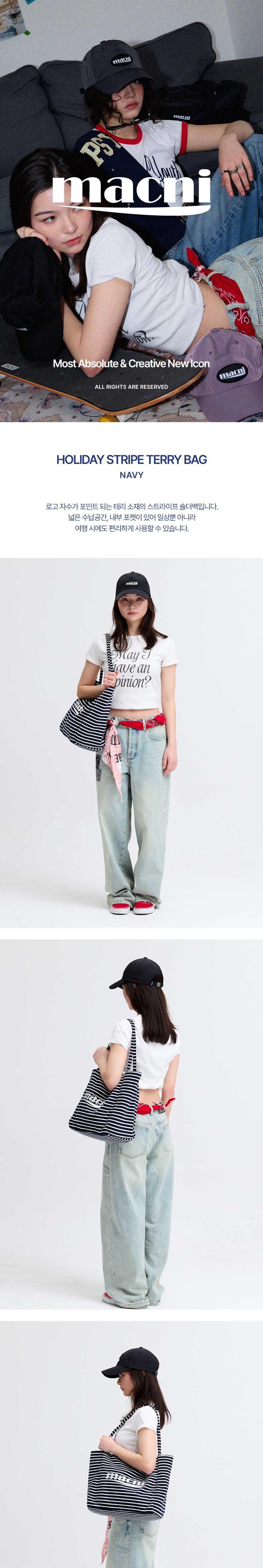 마크니 홀리데이 스트라이프 테리 백 네이비