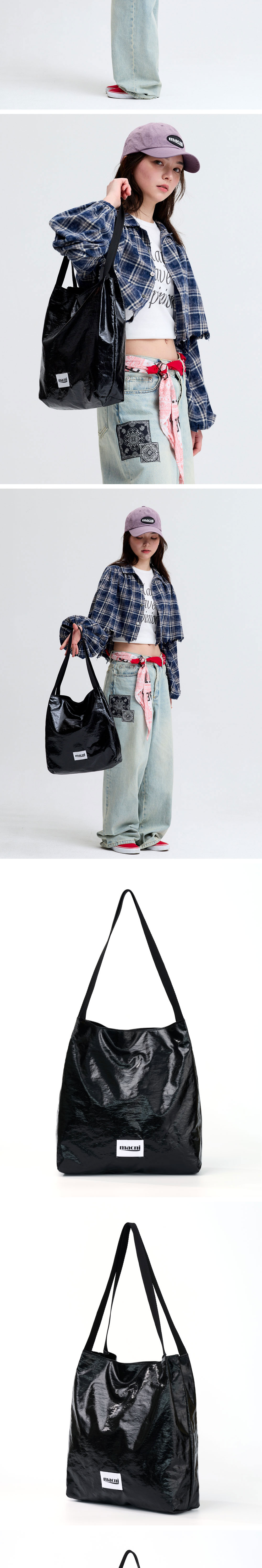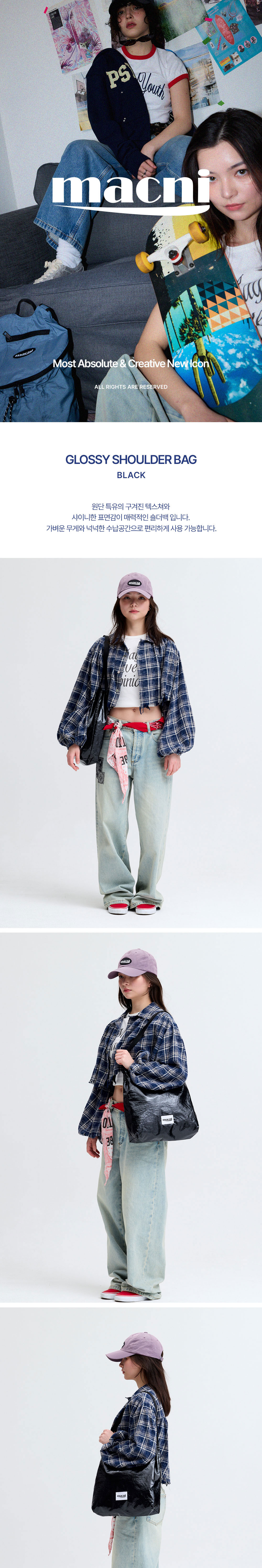 마크니 글로시 숄더 백 블랙