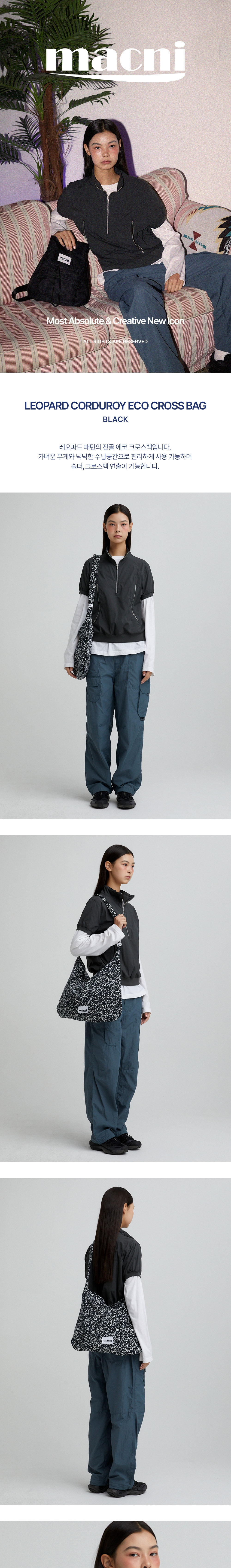 마크니 레오파드 코듀로이 에코 크로스 백 블랙