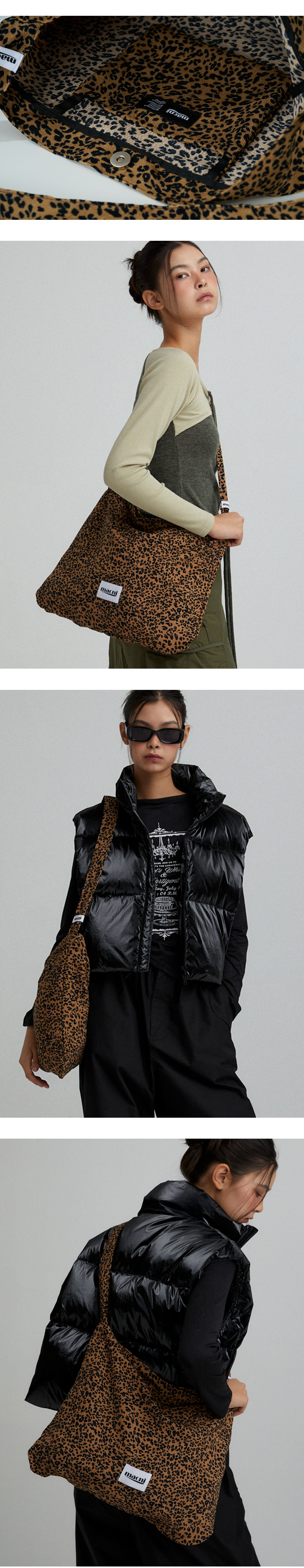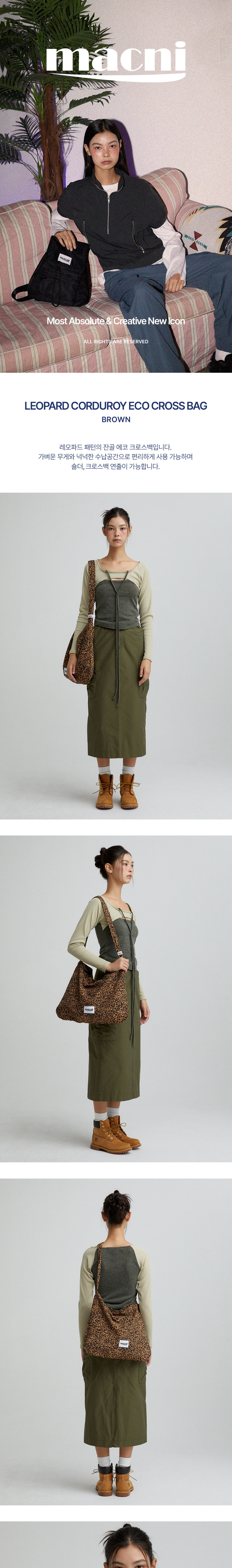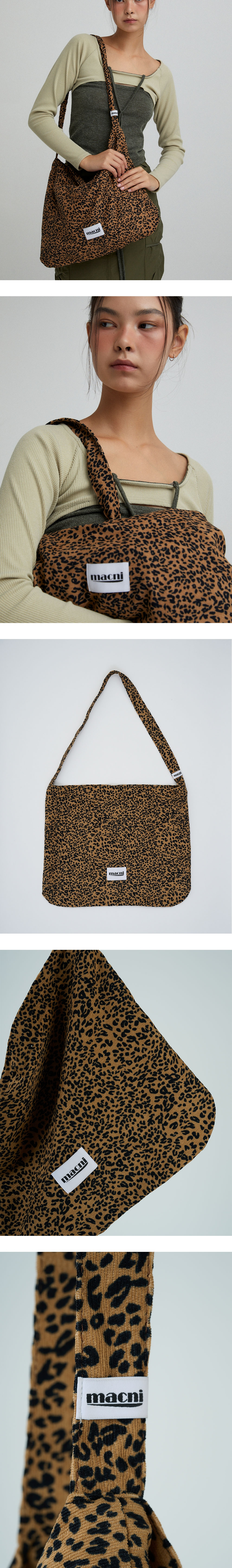 마크니 레오파드 코듀로이 에코 크로스 백 브라운