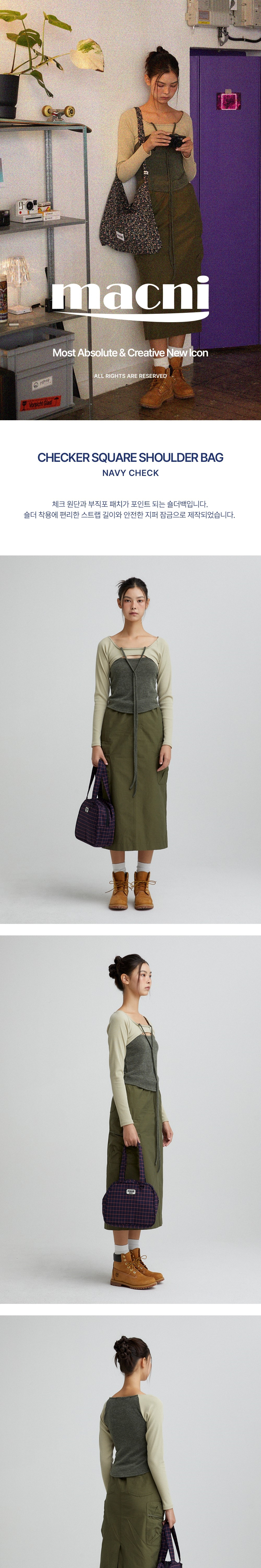마크니 체커 스퀘어 숄더 백 네이비 체크