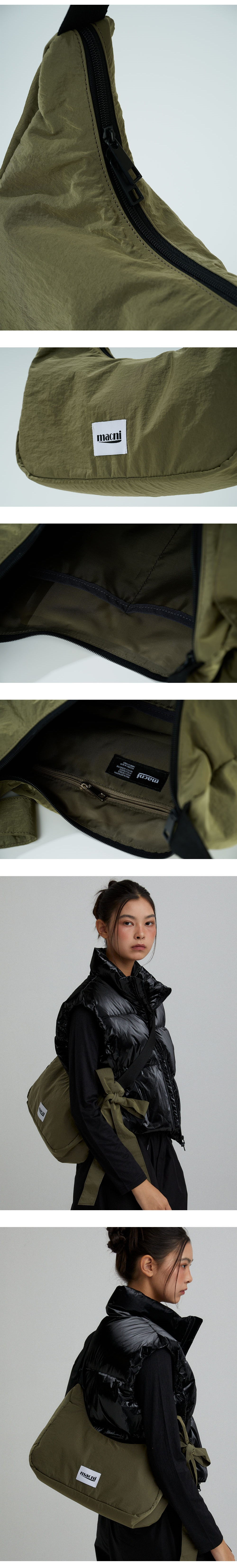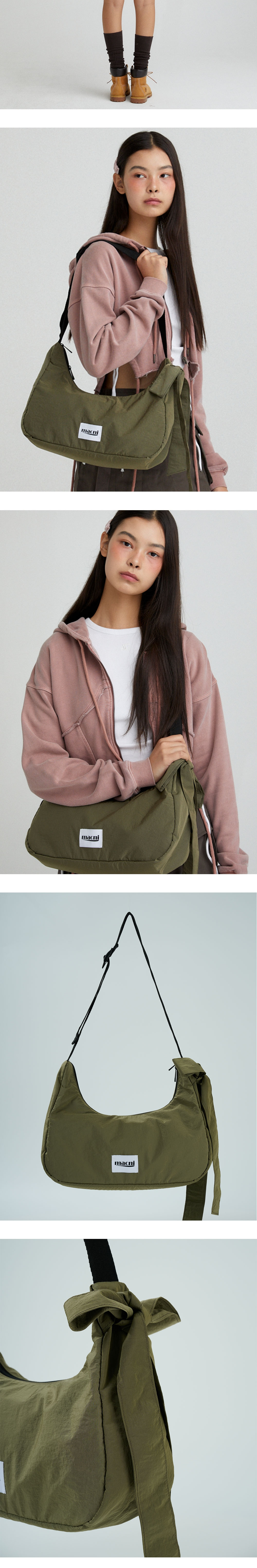 마크니 리본 크레센트 크로스 백 카키