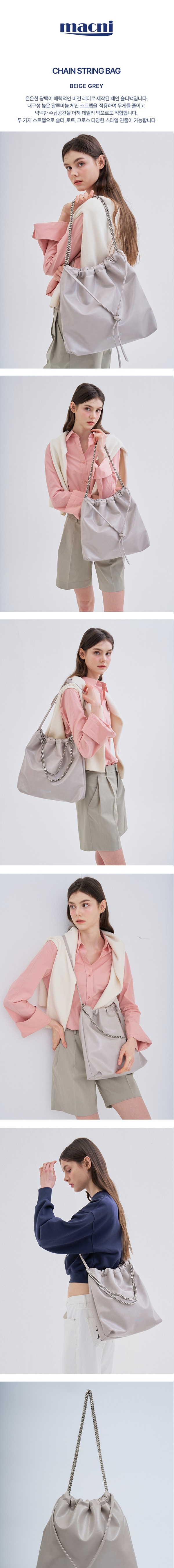 마크니 체인 스트링 백 베이지 그레이