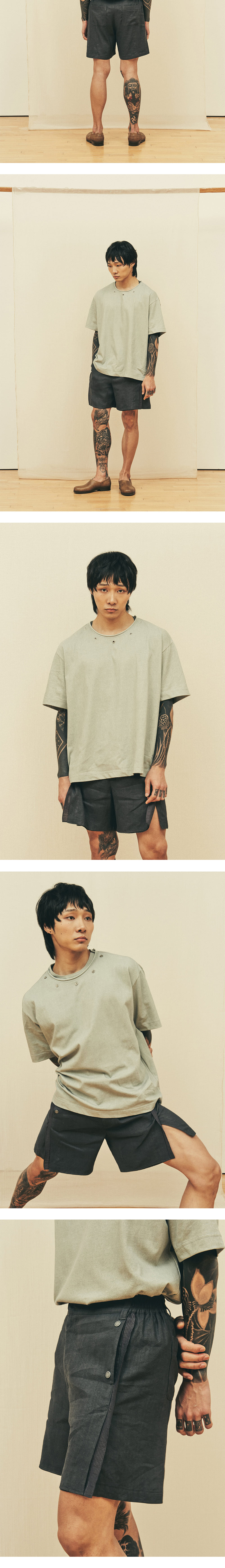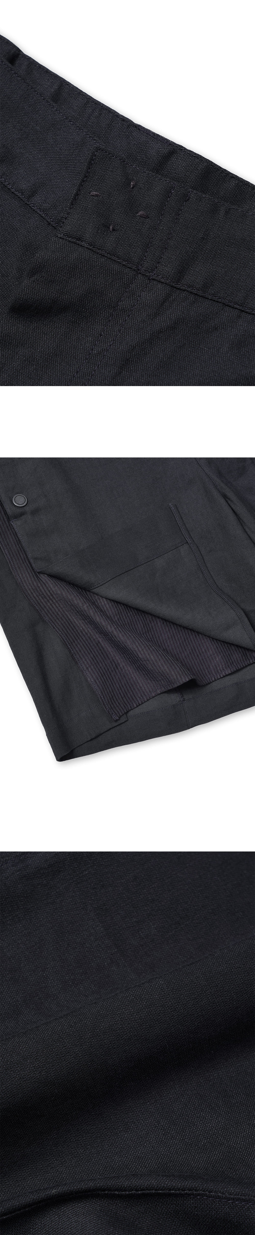 [원단] 탄성 있게 흐르는 린넨 혼방 원단으로 피부에 들러붙지 않아 쾌적한 착용감을 제공합니다. 레이온 함량이 높아 실키한 광택이 감도는 고급 소재입니다. [디테일] 밑단 슬릿 디테일에 배색 원단을 덧대어 움직일 때 자연스러운 실루엣과 은은한 나풀거림을 연출했습니다. 린넨 특유의 텍스처와 속 원단의 실키한 질감이 조화를 이루며 감각적인 무드를 완성합니다. [메이킹] 주머니에 스냅을 추가해 소지품이 빠지지 않도록 해 실용성을 높였습니다. 앤티크한 금속 스냅과 꽃 모양 스티치가 드러나는 ‘곤도라 스냅’ 디테일을 더해 섬세한 디자인 요소를 담았습니다. * 모델 : 180cm 70kg / III (32) 착용