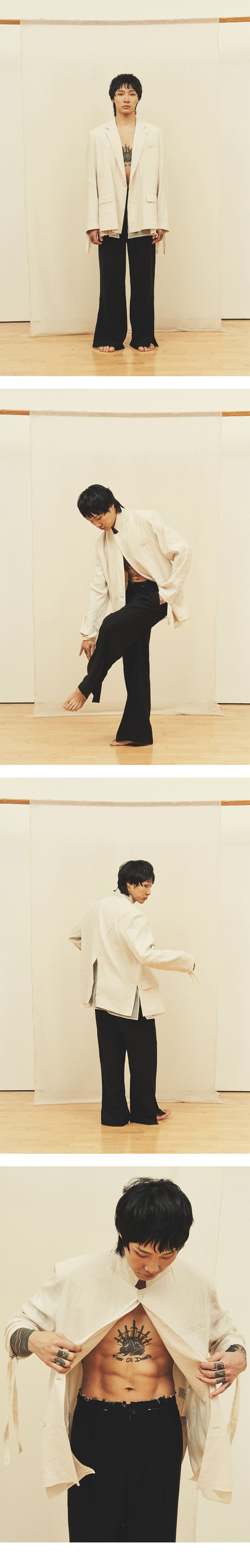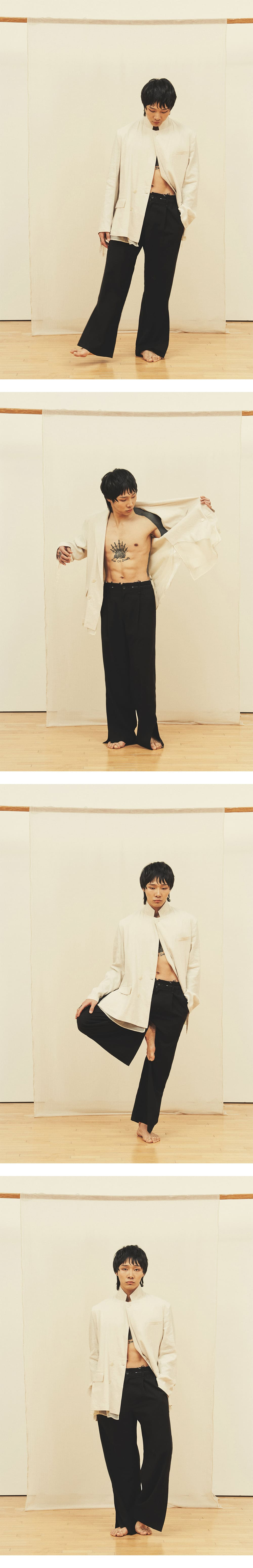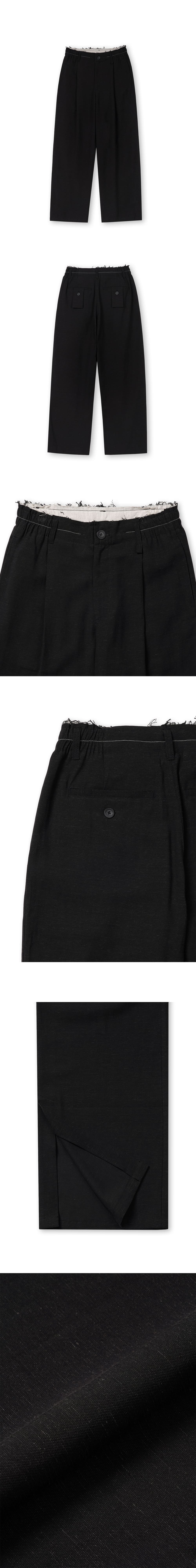 [원단] 더운 계절에도 쾌적하게 착용할 수 있도록 린넨 혼방 원단을 사용했습니다. 자연스럽게 흐르는 실루엣과 은은한 광택감이 특징이며, 구김이 적어 깔끔한 핏을 유지할 수 있습니다. 또한, 린넨 특유의 감촉과 텍스처가 고급스러움을 더해줍니다. [디테일] 흐르는 성질이 강한 원단의 특성을 살려 와이드한 실루엣으로 디자인했습니다. 밑단에 슬릿 디테일을 추가해 걸을 때마다 자연스럽고 유려한 움직임을 연출하며, 상황에 따라 밑단이 벌어지면서 플레어 핏이 돋보입니다. 뒷 주머니에는 긴 형태의 패치 디테일을 더해 위트 있는 포인트를 주었습니다. [메이킹] 허리 안쪽에는 배색 원단을 컷오프 마감하여 올이 자연스럽게 풀리도록 했으며, 사이드 밴딩을 적용해 편안한 착용감을 제공합니다. *사진 상의 키링은 세트 상품이 아닙니다. * 모델 : 180cm 70kg / III (32) 착용