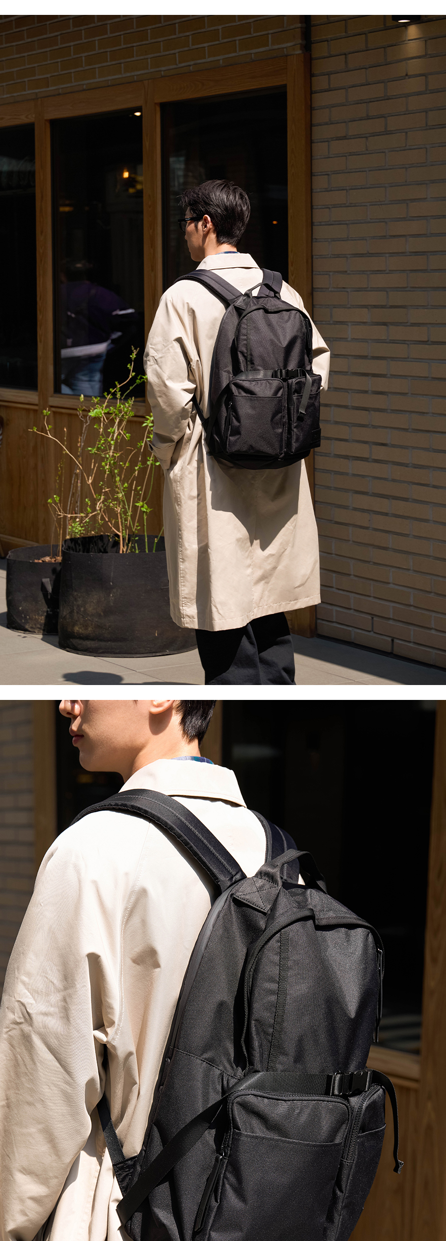• 고밀도 웨빙 핸들과 블랙 니켈 D링 • 비슬론 지퍼와 로고가 각인된 가죽 지퍼 풀러 • 블랙 니켈 버클 웨이스트 스트랩과 로고 가죽 패치 • 방수 지퍼가 사용된 노트북 전용 수납 섹션 • 오거나이저 내부 수납 포켓 및 내부 메쉬 지퍼 포켓 • 접이식 처짐 방지 패드와 텀블러 고정용 E•밴드 • 고밀도 웨빙 캐리어 홀더 * 웨이스트 스트랩의 양쪽 길이는 모두 상이하며, 앞면 결합 시 버클이 가운데로 위치하지 않을 수 있습니다.