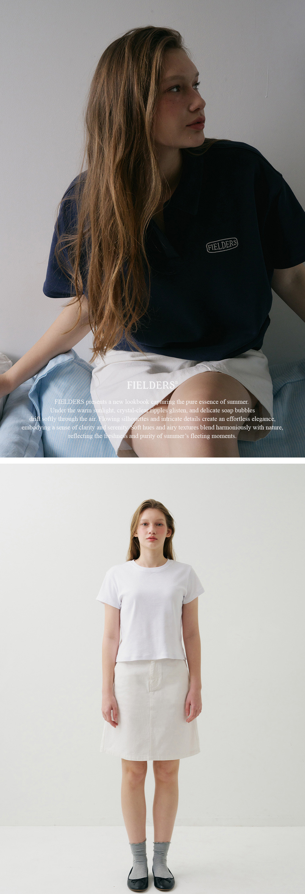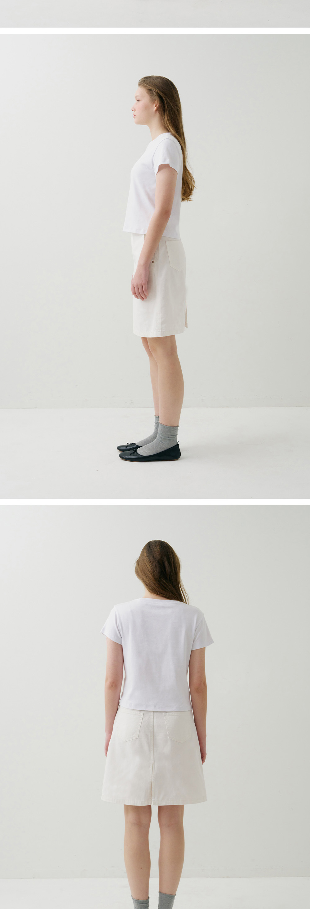 필더스 스톤 워싱 미디엄 스커트 화이트