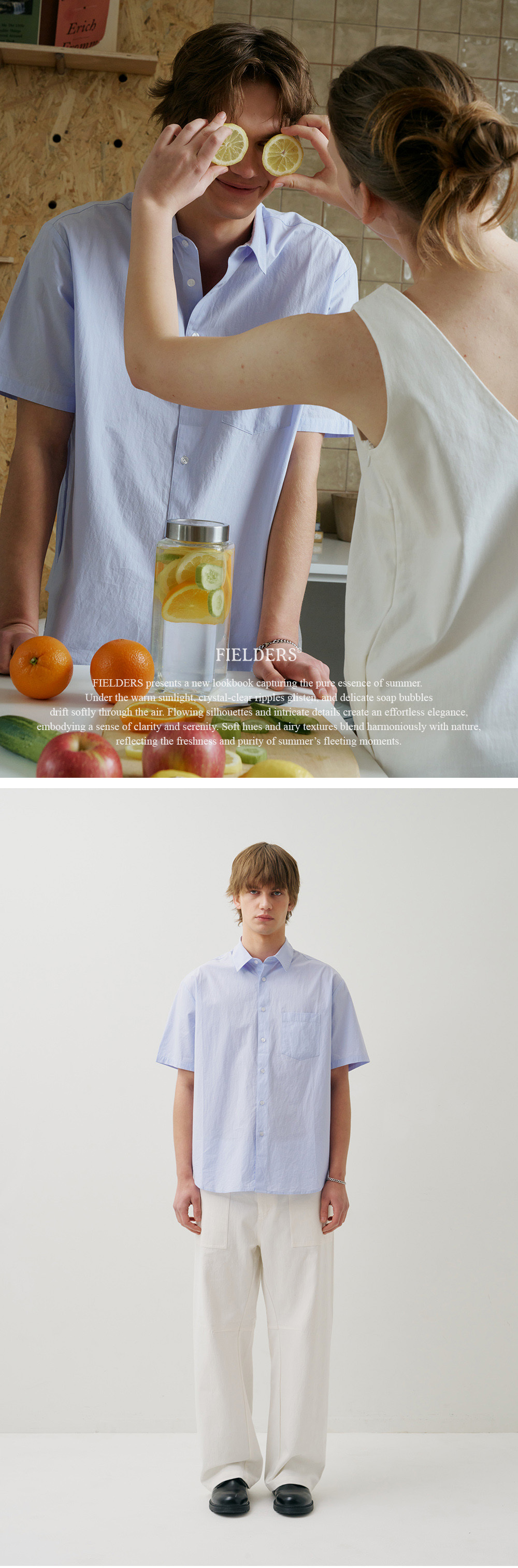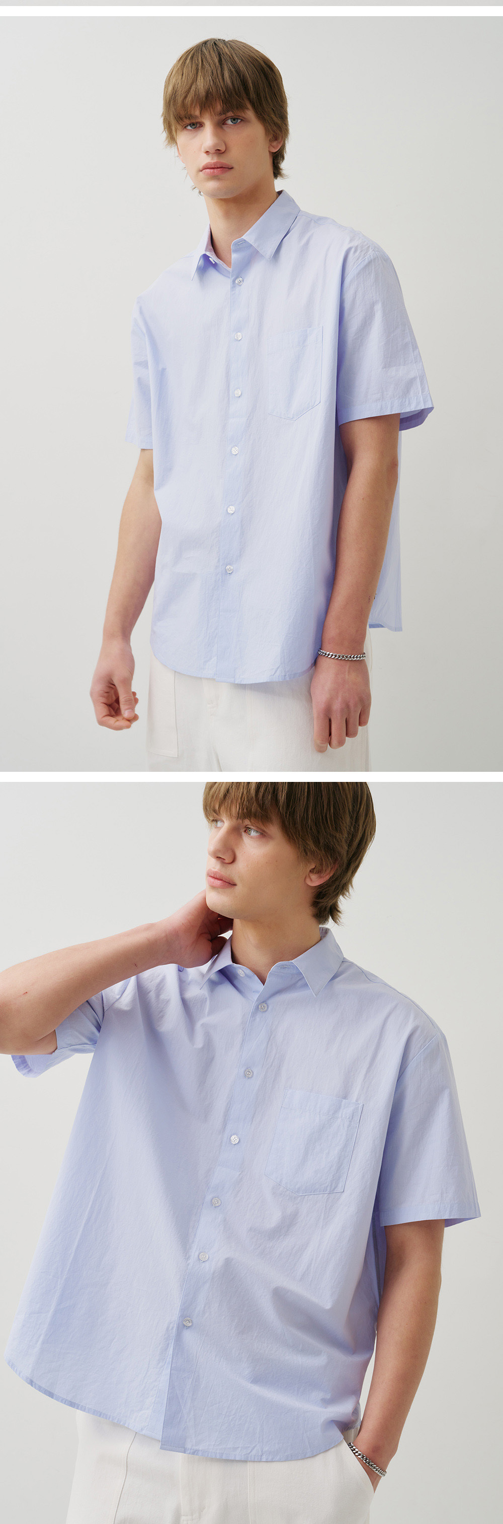 필더스 베이직 스탠다드 핏 포켓 숏 슬리브 셔츠 블루