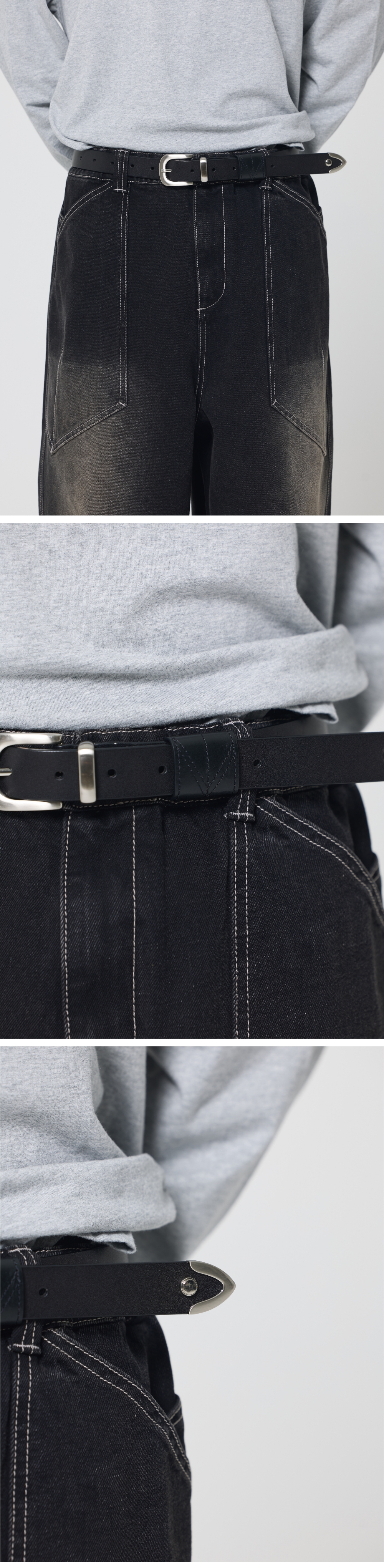 V-스티치 가죽 고리 포인트 통가죽 벨트 - 내구성이 좋은 카우하이드 통가죽사용 - 벨트 끝부분 금속팁, 솔트레지 사용 - 제원단 V스티칭 가죽고리 디테일 Shell - 소가죽 100% 가죽의 경우, 가죽 표면이 건조하게 느껴지실 경우, 레더 전용 크림 및 오일 케어를 권장드립니다. 가죽 제품은 일반 세탁이 불가능하며, 세탁시 가죽 전문 클리닝 업체 이용을 권장드립니다. 가죽 특성상 본연의 순수한 표면을 그대로 표현하기 때문에 라이프 스타일에 따라 상처나 흉터가 그대로 나타나게 됩니다. Free : 벨트깡 외경 4 , 내경 3 벨트 길이 111, 폭 2.8